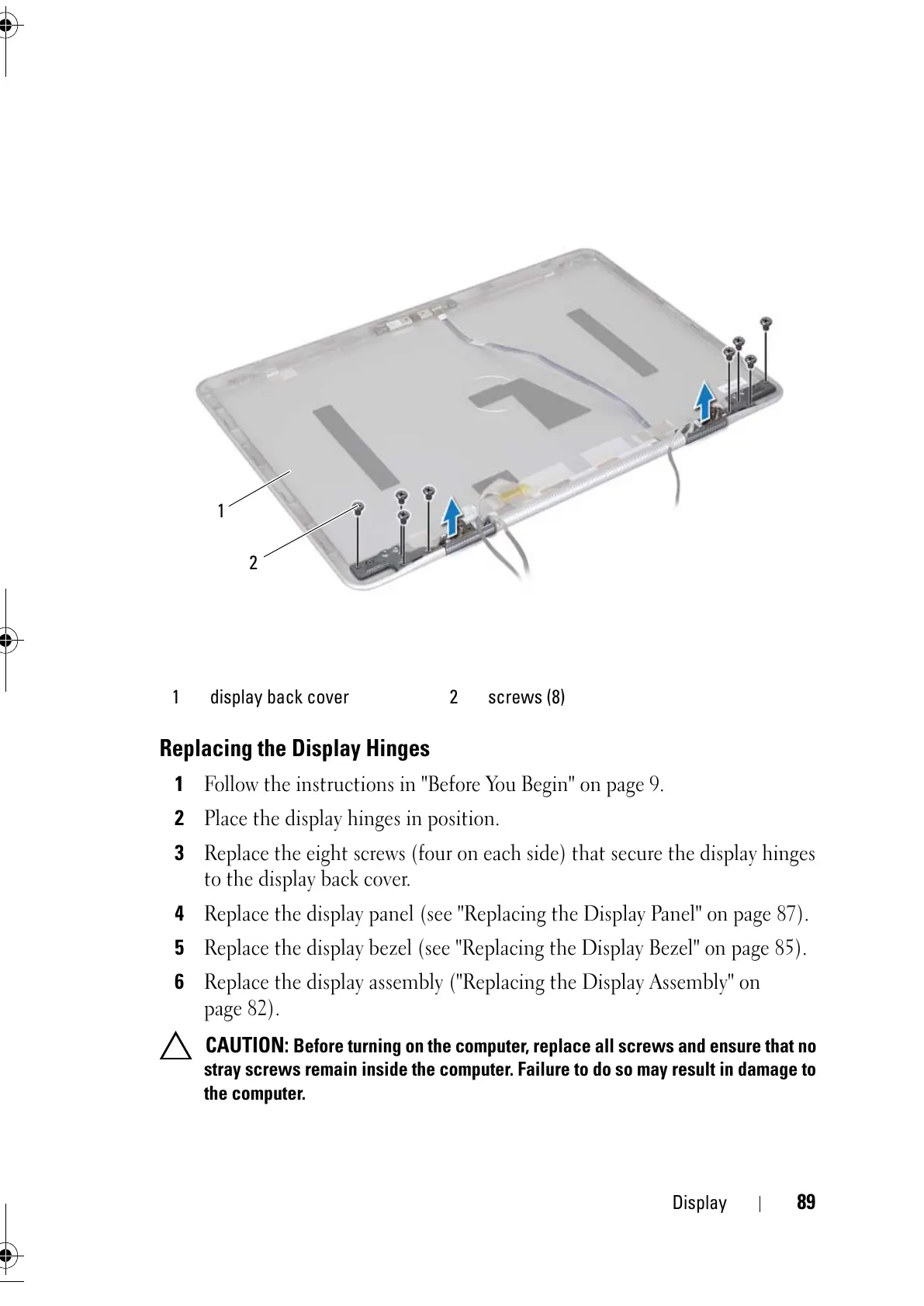 Replace the display bezel (see "Replacing the Display Bezel" on page 85).