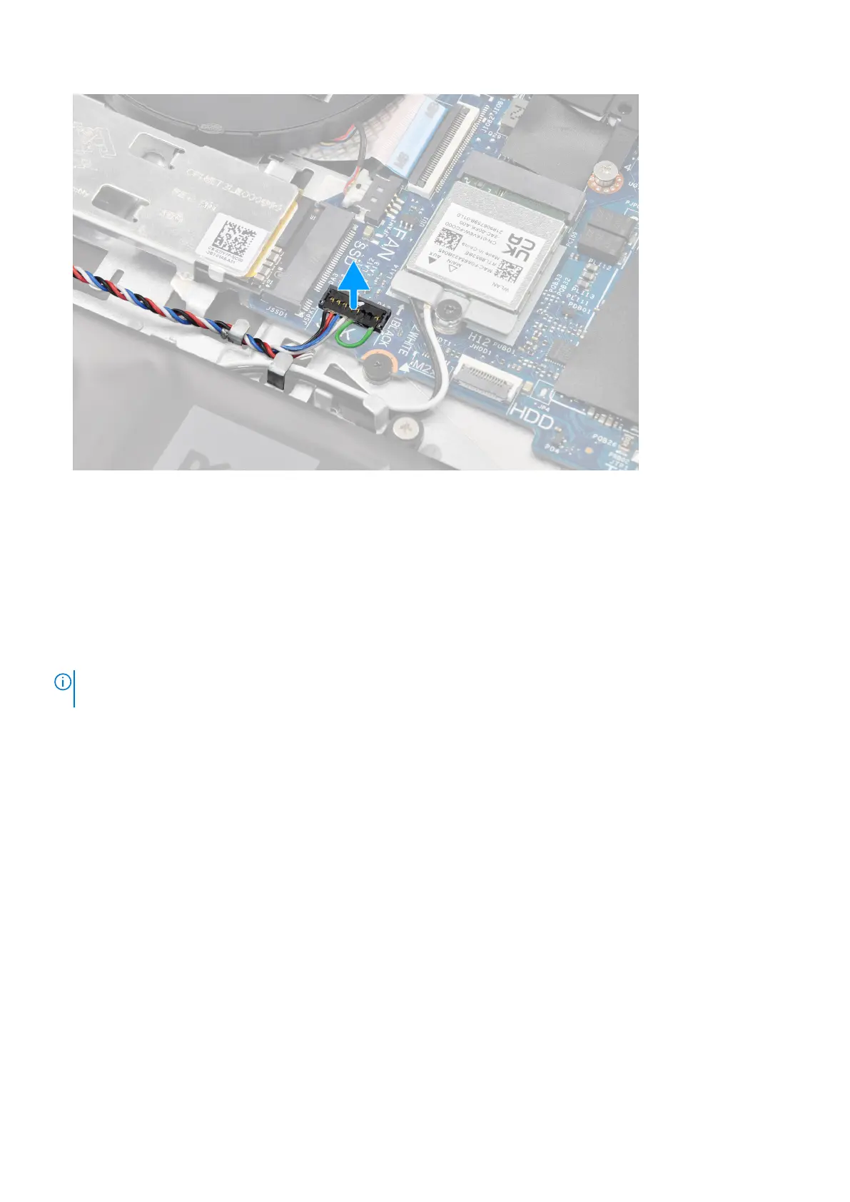 2. Unroute and remove the speaker cable from the routing guides on palm-rest and keyboard assembly.