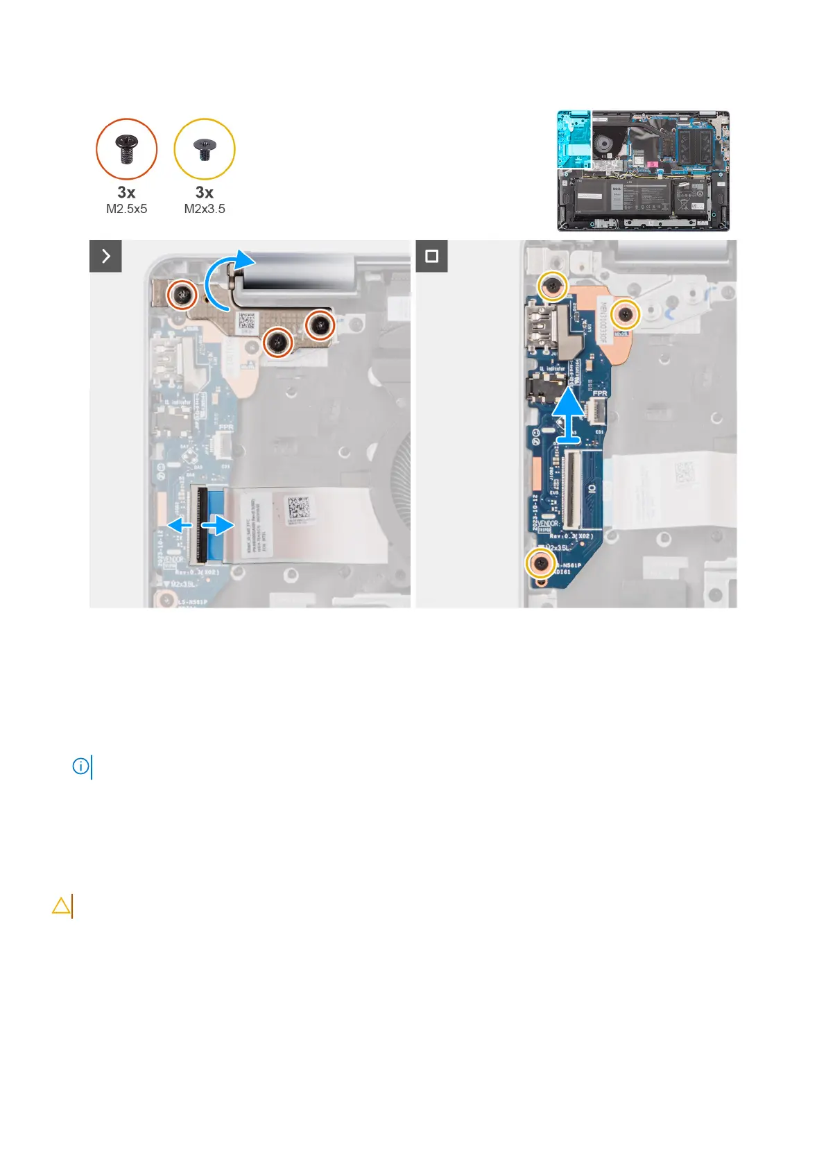 5. Remove the three screws (M2x3.5) that secure the I/O board to the palm-rest and keyboard assembly.