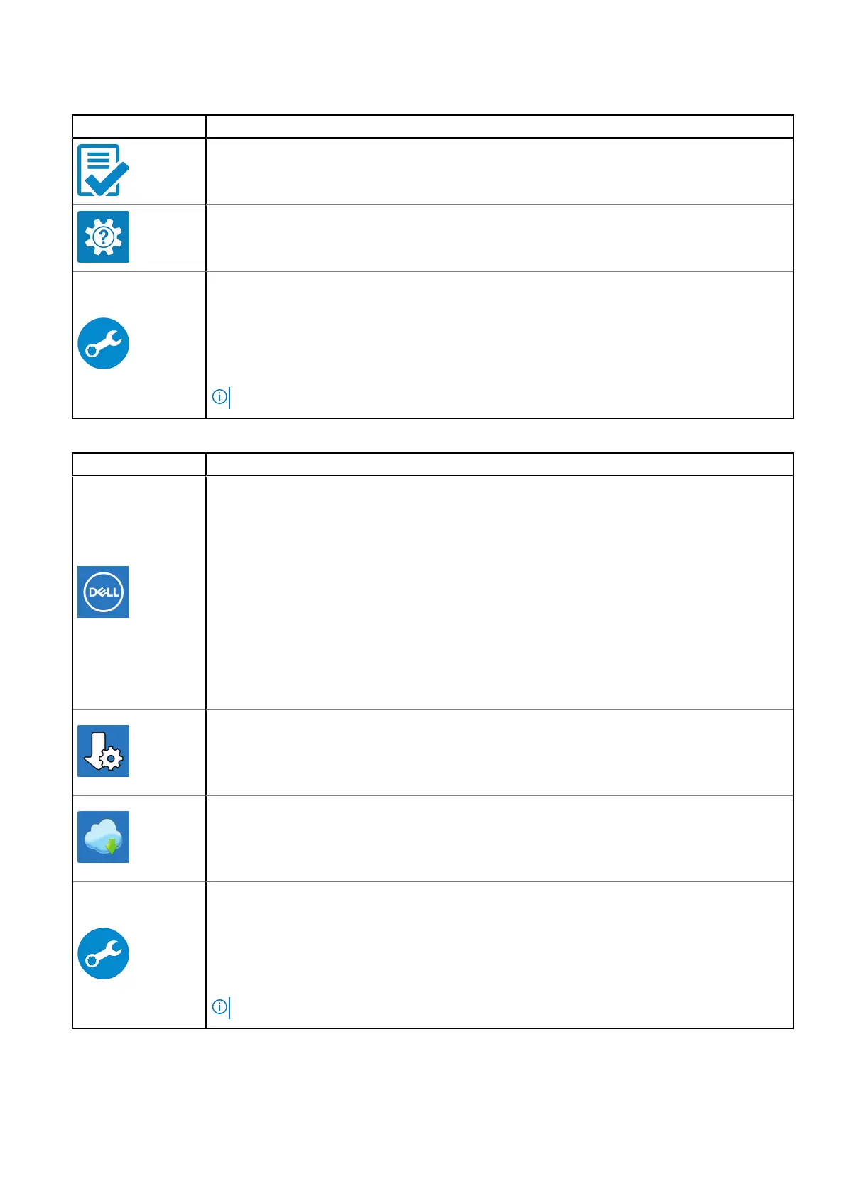 Table 3. Locate Dell apps in Windows