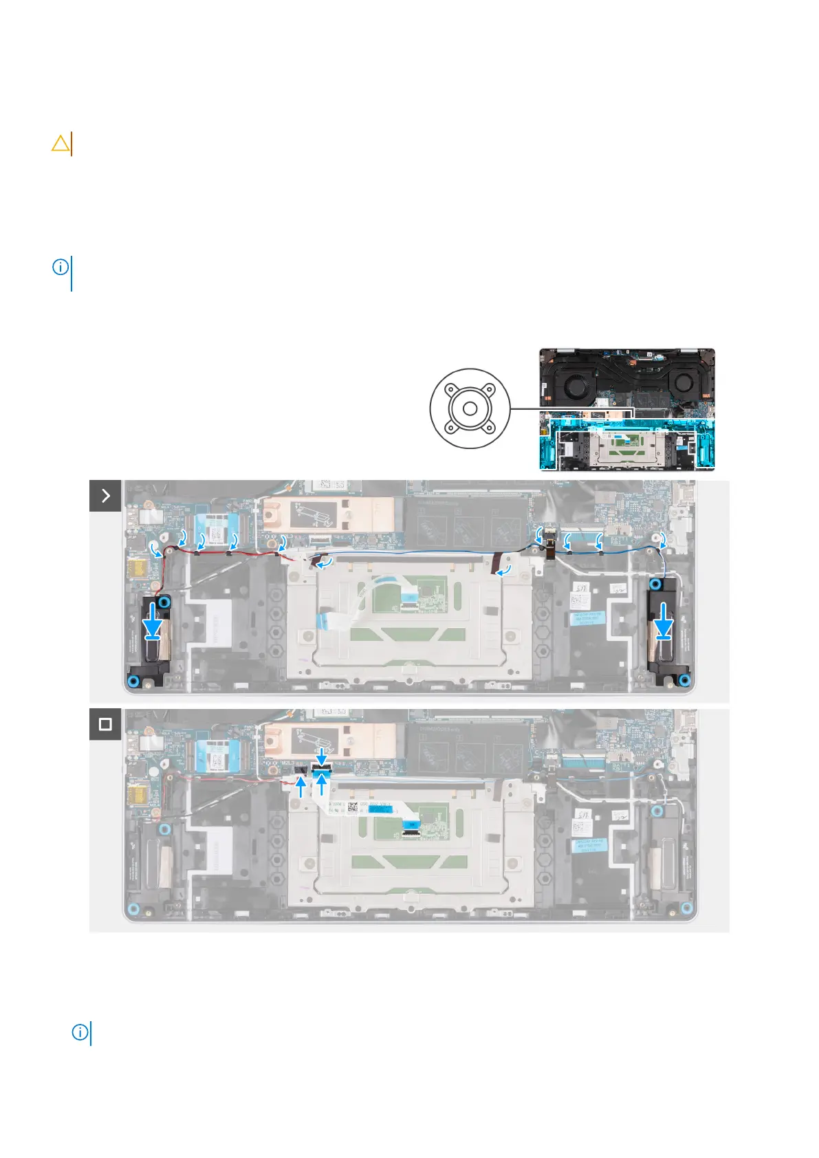 NOTE: Ensure that the four rubber grommets are seated into the slot and installed correctly on the speakers.