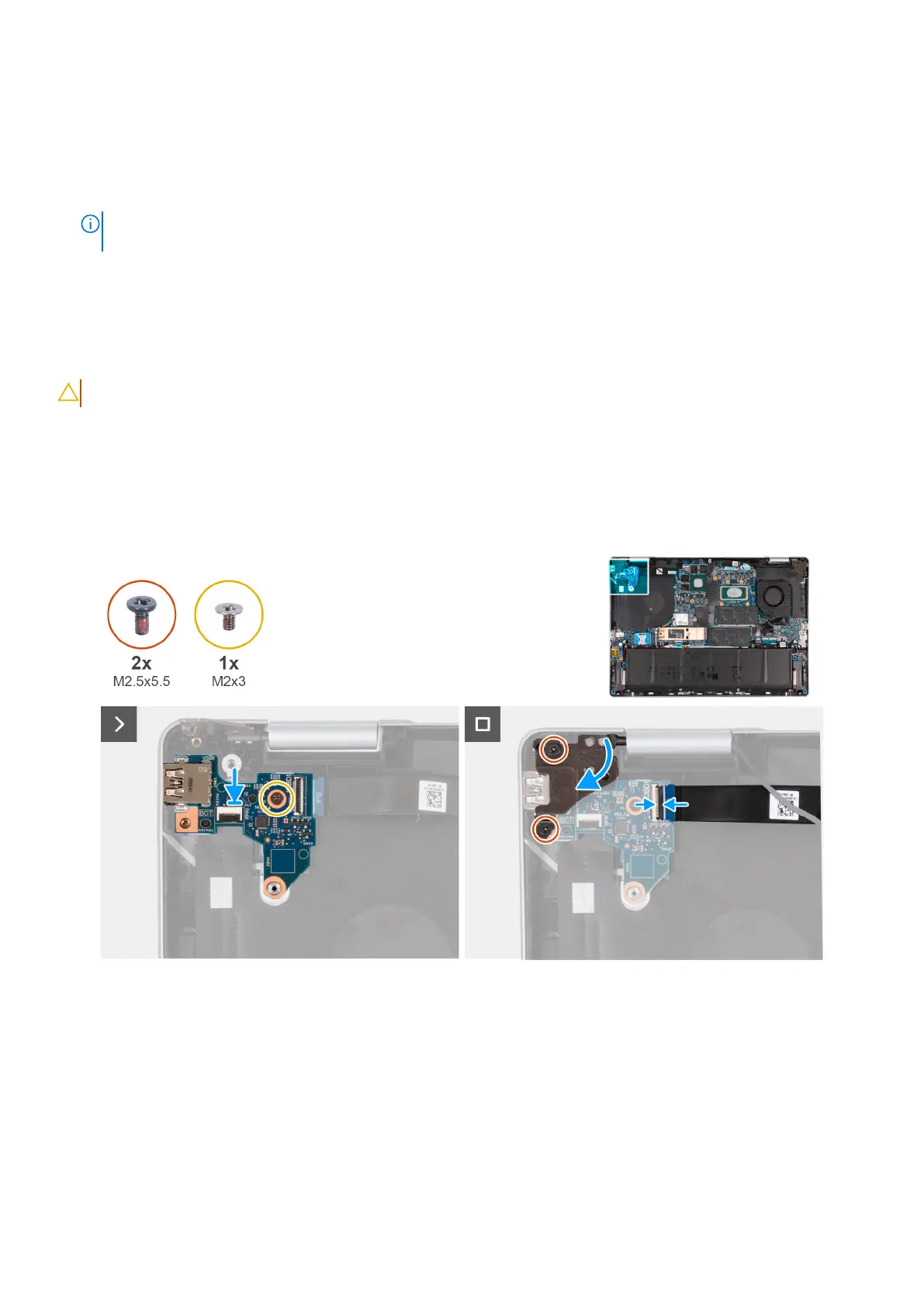 4. Replace the screws (M2x3) that secures the I/O board to the palm-rest and keyboard assembly.