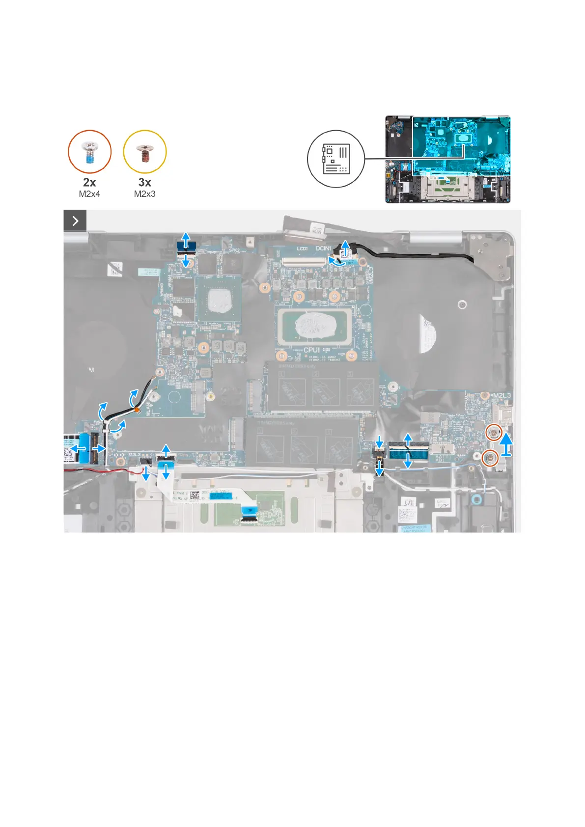 The following image(s) indicate the location of the system board and provides a visual representation of the removal procedure.