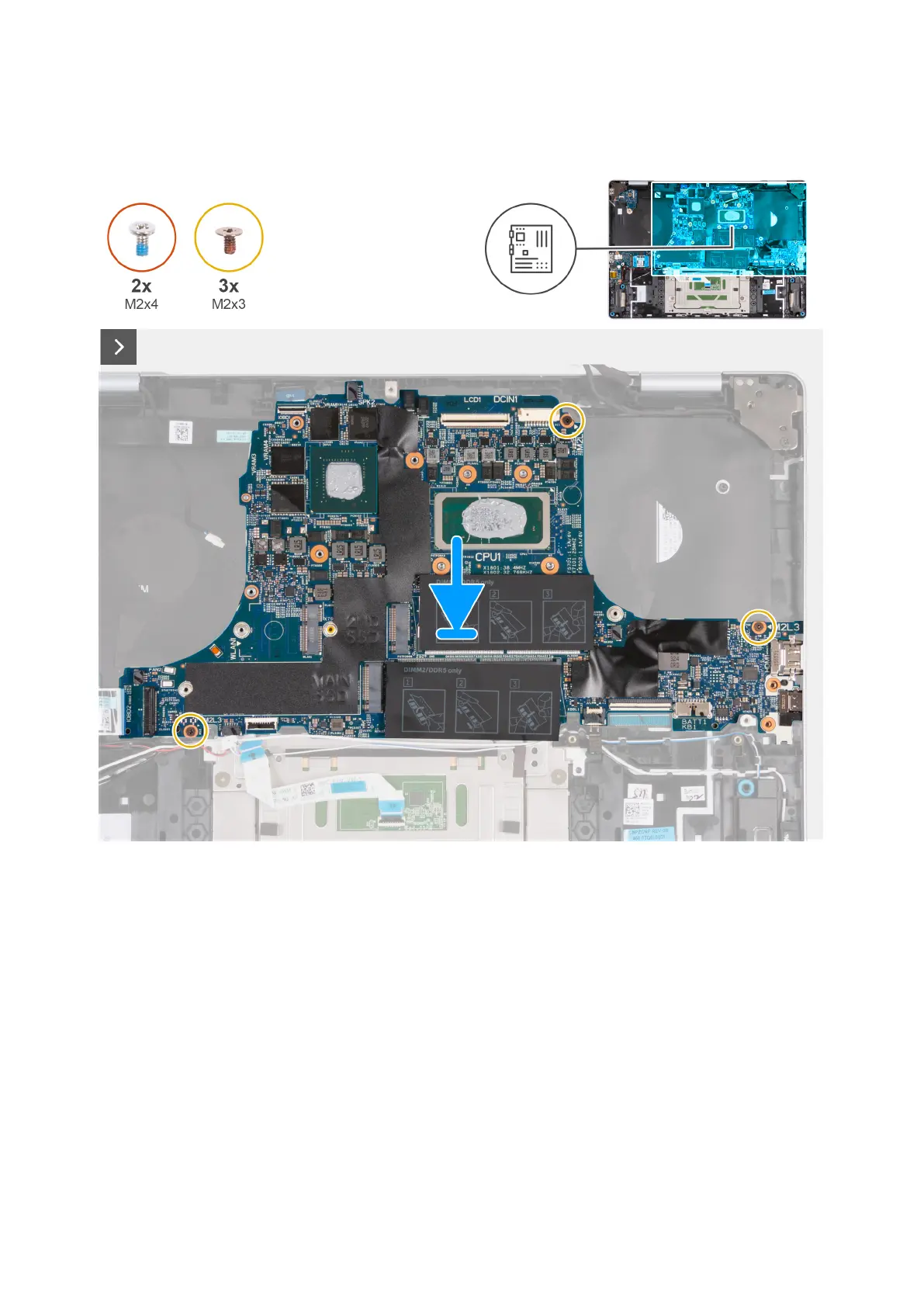 The following image(s) indicate the location of the system board and provides a visual representation of the installation