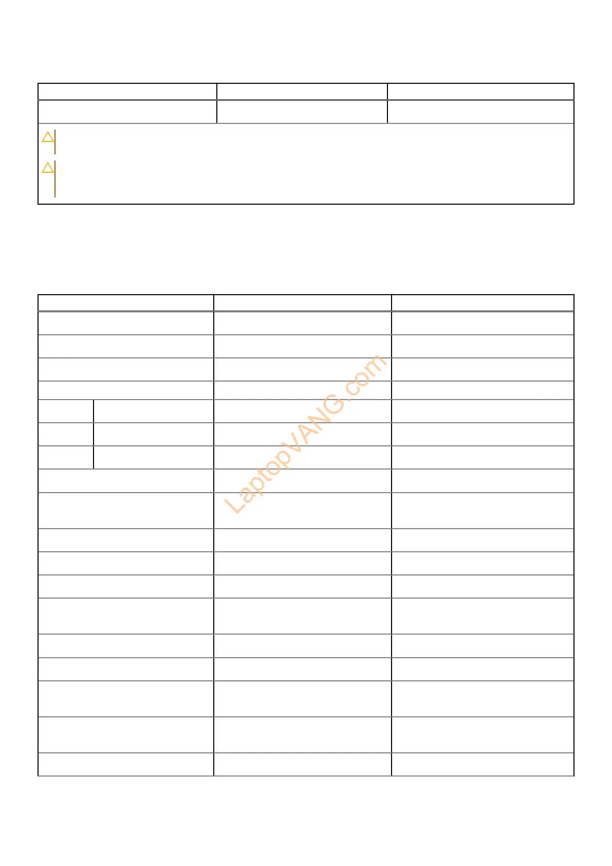 Table 21. Display specifications