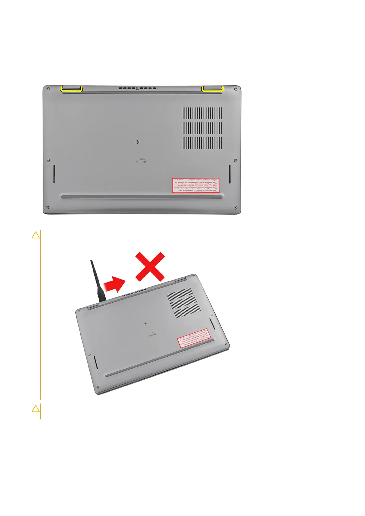 CAUTION: Do not pry upwards from the edge near the vents, at the top side of the base cover, as it damages