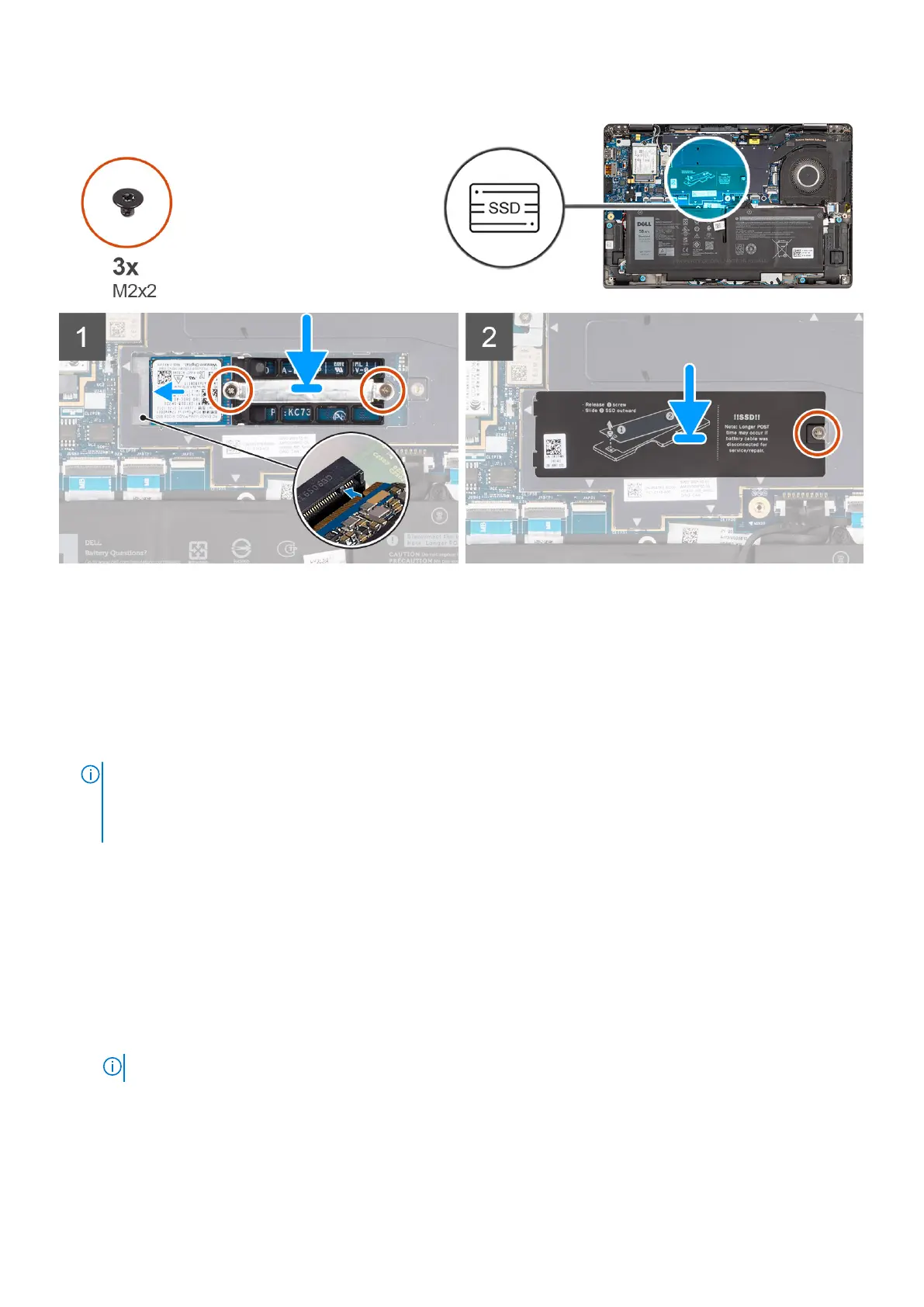 8. Replace the screw (M2x2) to secure the M.2 2230 solid-state drive thermal plate to the palm-rest and keyboard assembly.