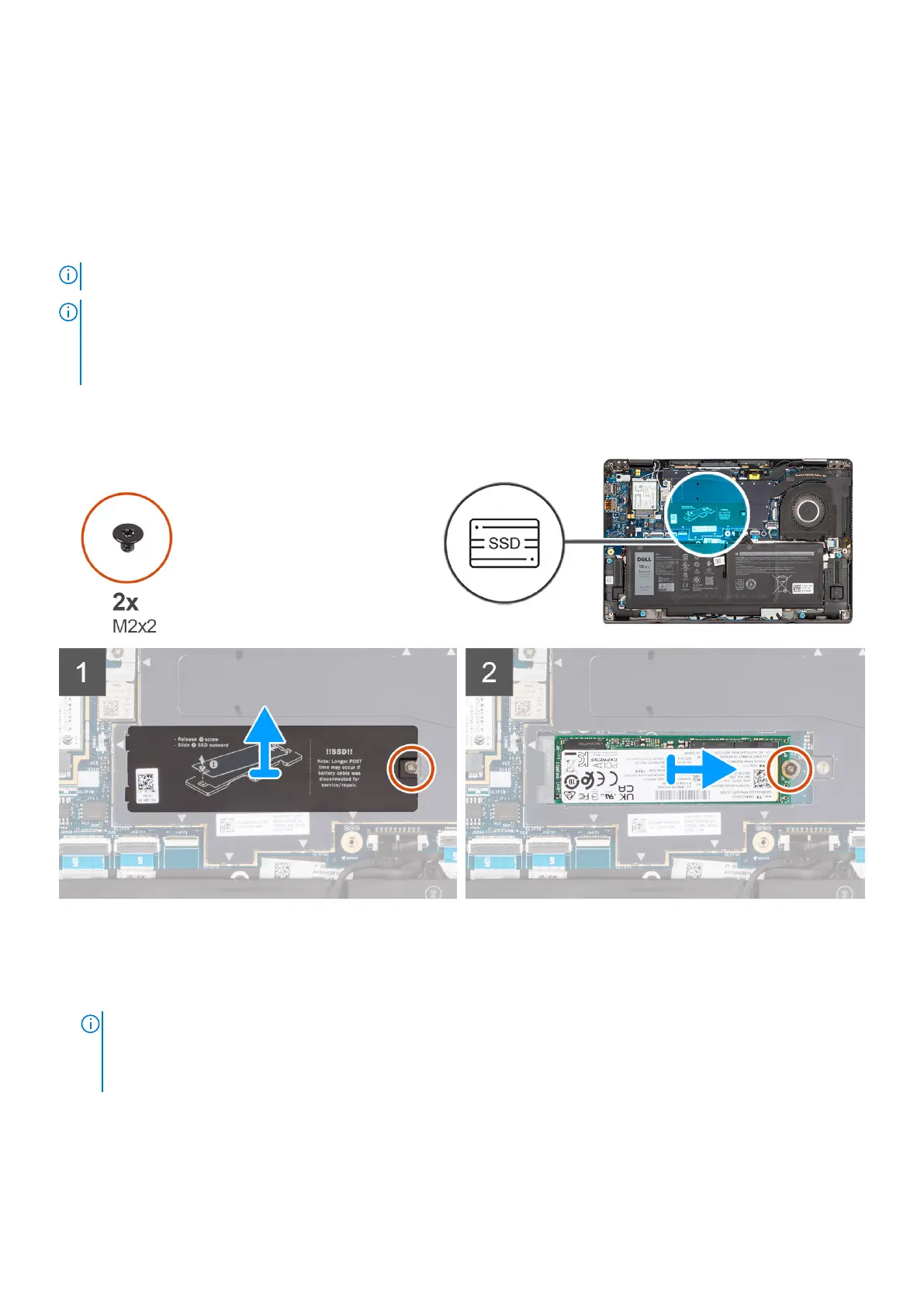 The following images indicate the location of the M.2 2280 solid-state drive and provide a visual representation of the removal