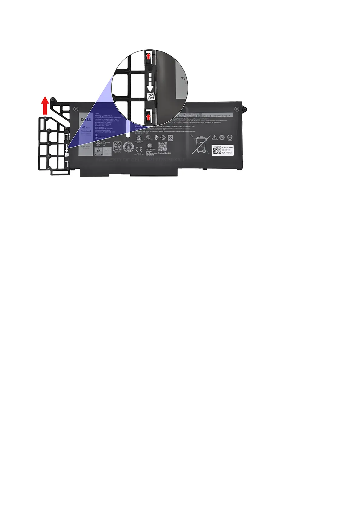The following image indicates the location of the 4-cell battery and provides a visual representation of the removal procedure.