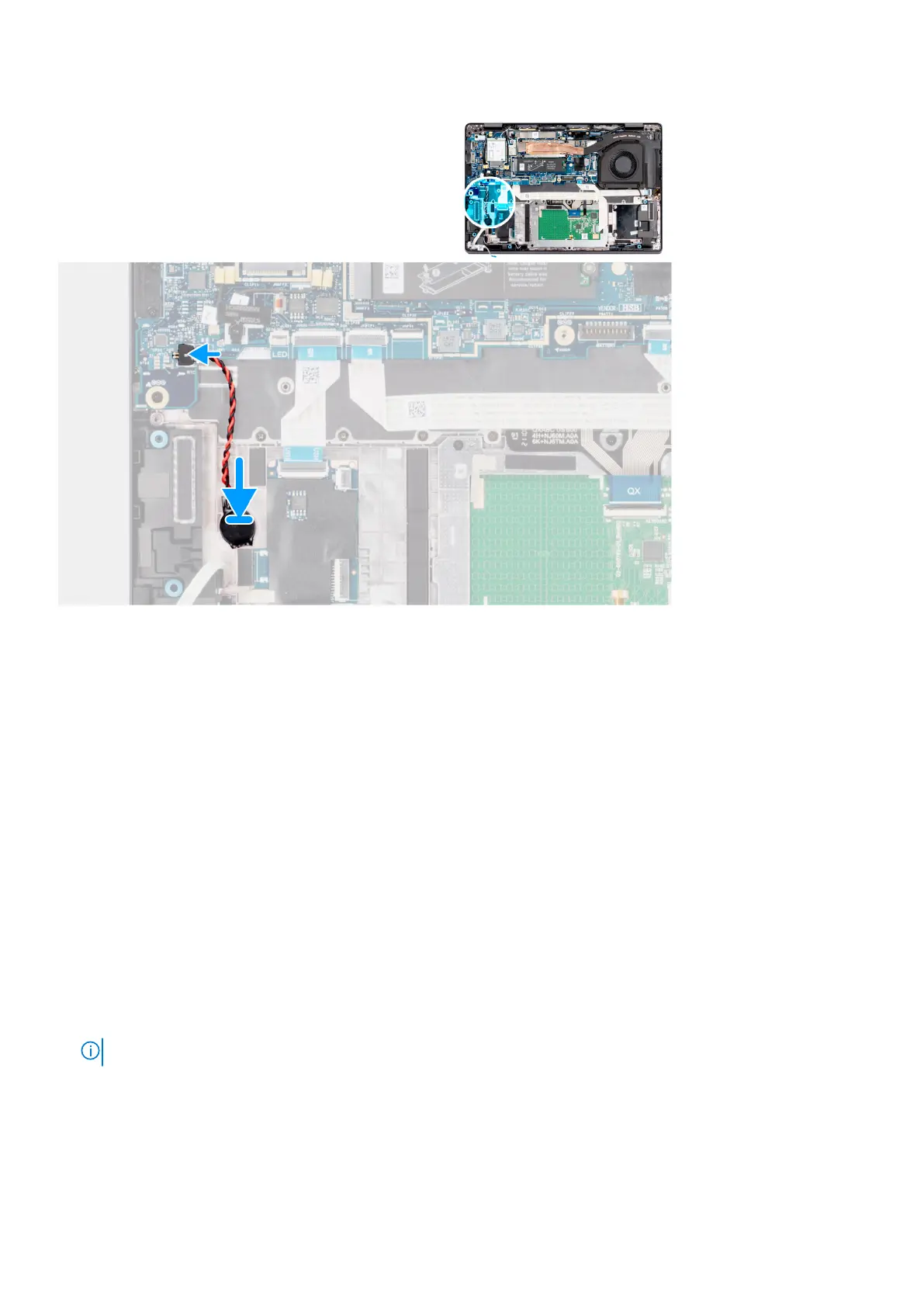 1. Place the coin-cell battery into its slot on the palm-rest and keyboard assembly.