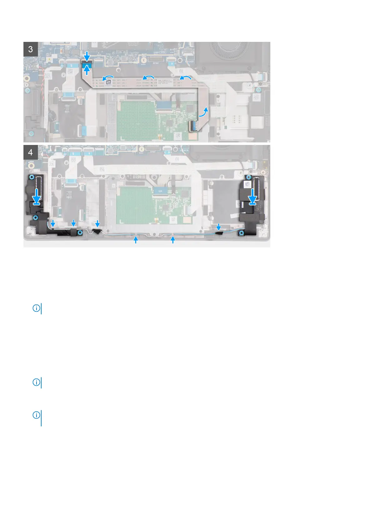 The speaker cable must be routed through the routing guides to avoid damaging the speaker cable when