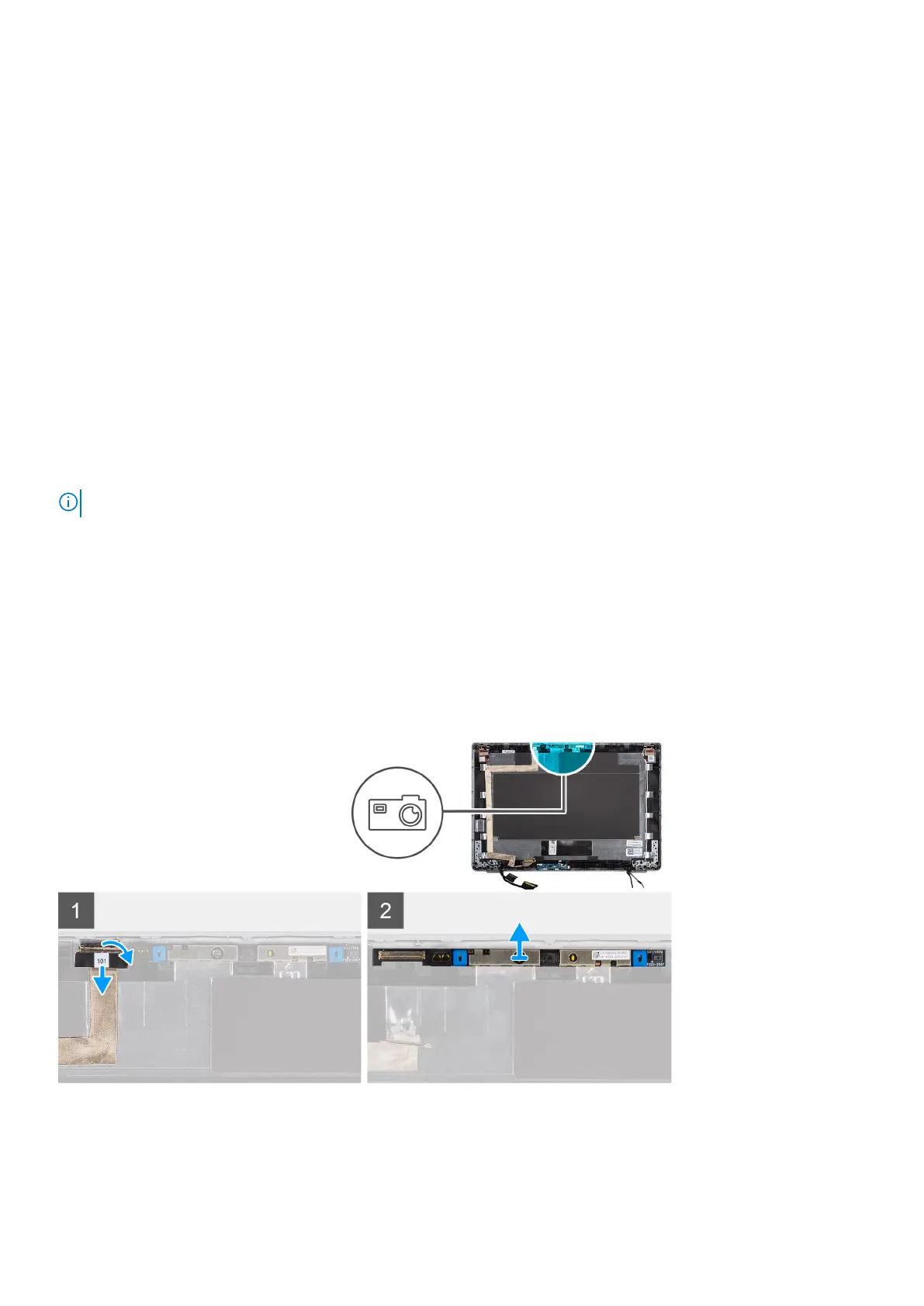 NOTE: The camera removal procedure is applicable only for Latitude 5330 laptop and not for the 2-in-1 configuration.