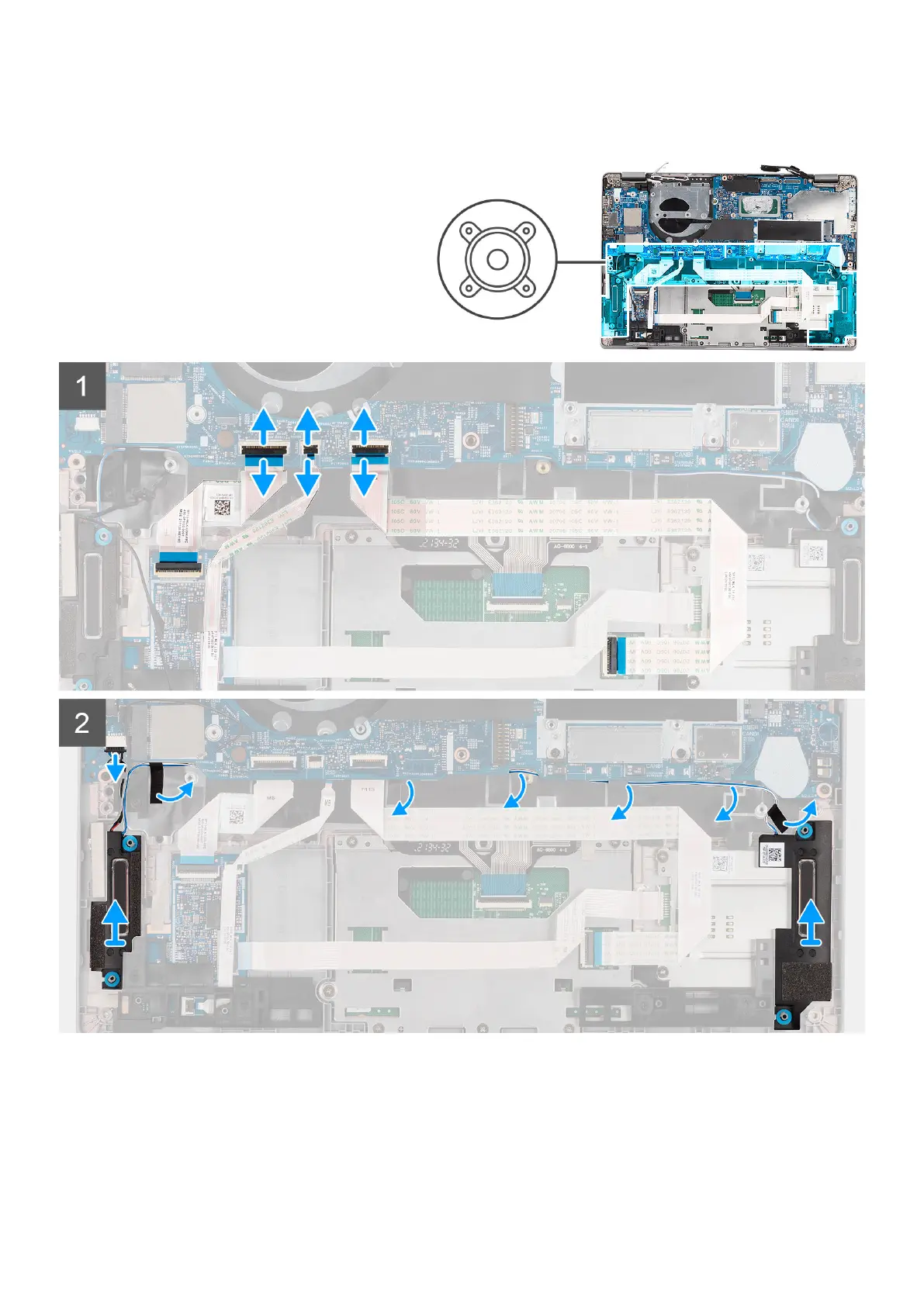 5. Lift the speakers along with the cable off the palm-rest assembly.