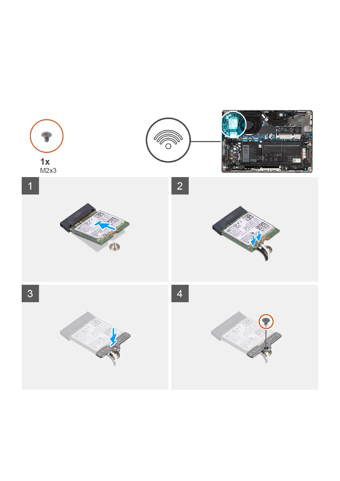 The following image indicates the location of the WLAN card and provides a visual representation of the installation procedure.