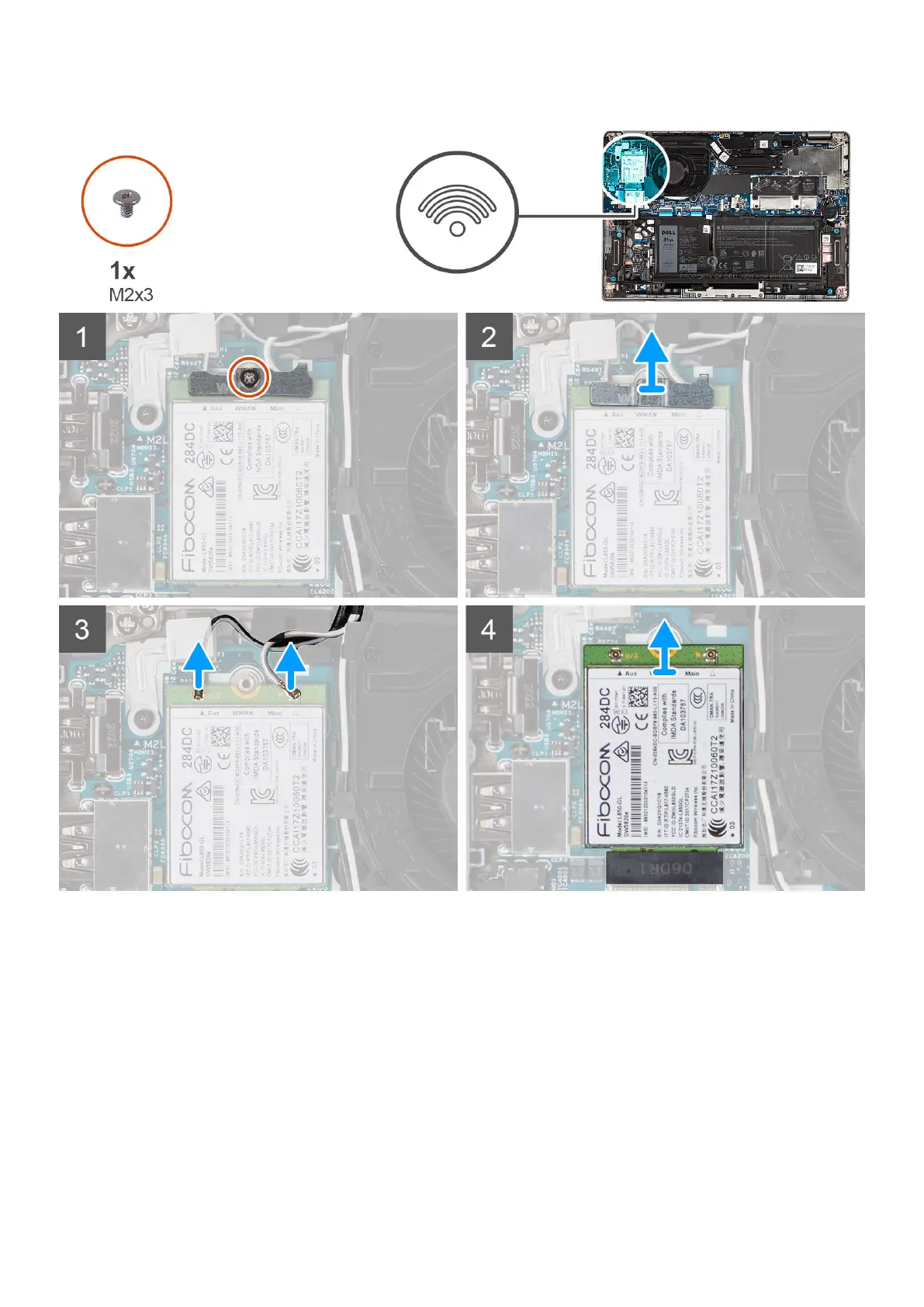 1. Remove the screw (M2x3) that secures the WWAN-card bracket to the WWAN card.