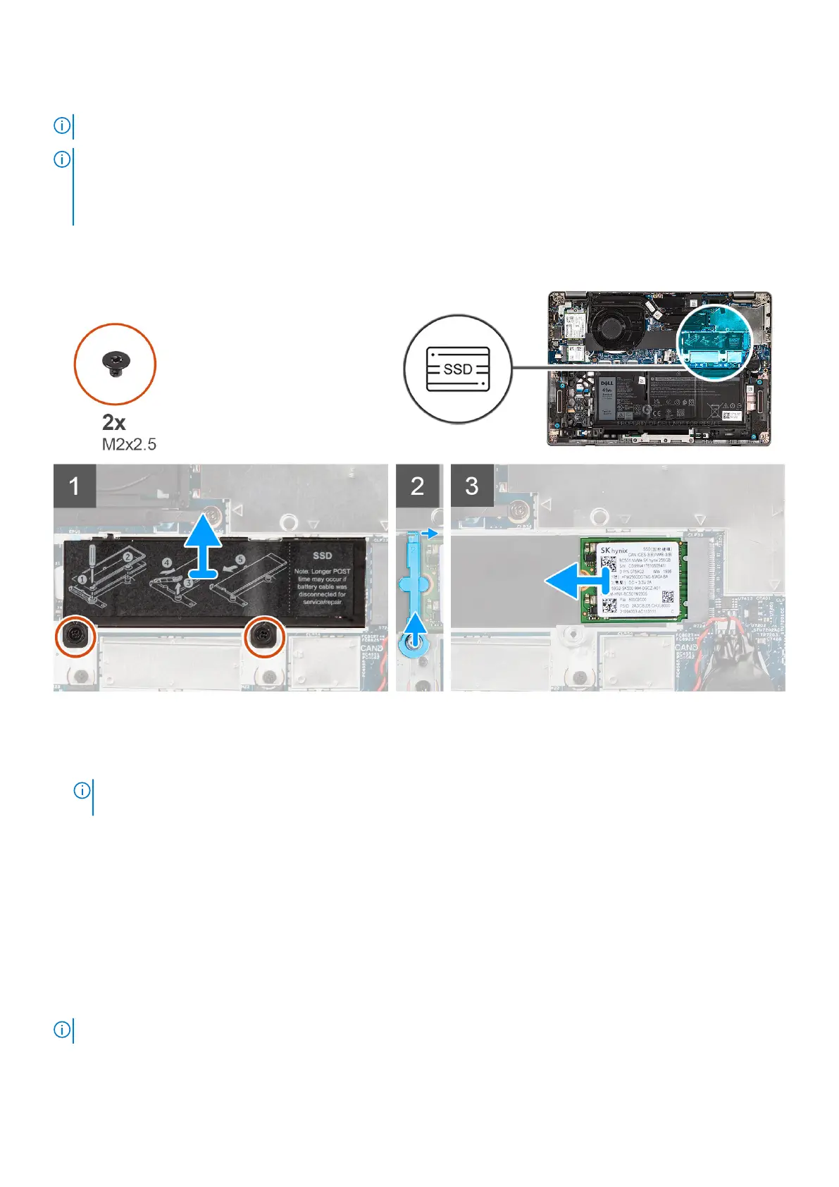 The following images indicate the location of the solid-state drive and provide a visual representation of the removal procedure