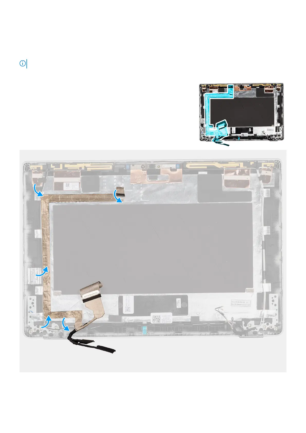 NOTE: The eDP cable installation procedure is applicable only for Latitude 5330 laptop and not for the 2-in-1 configuration.