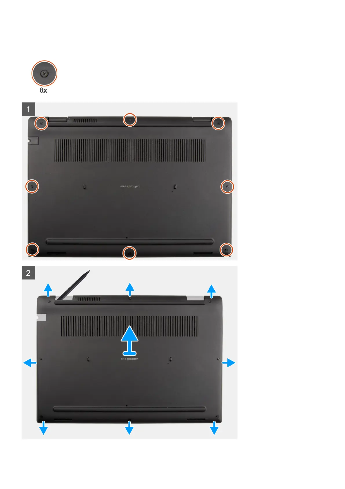 The following images indicate the location of the base cover and provide a visual representation of the removal procedure.