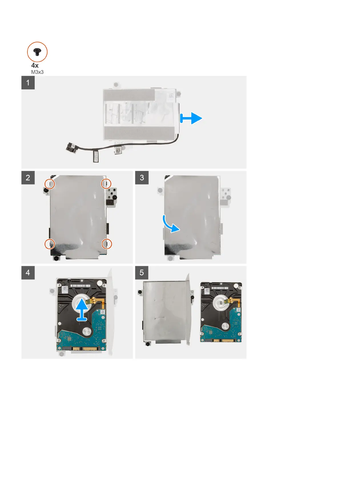 2. Remove the four (M3x3) screws that secure the hard-disk drive to the hard-disk drive bracket.
