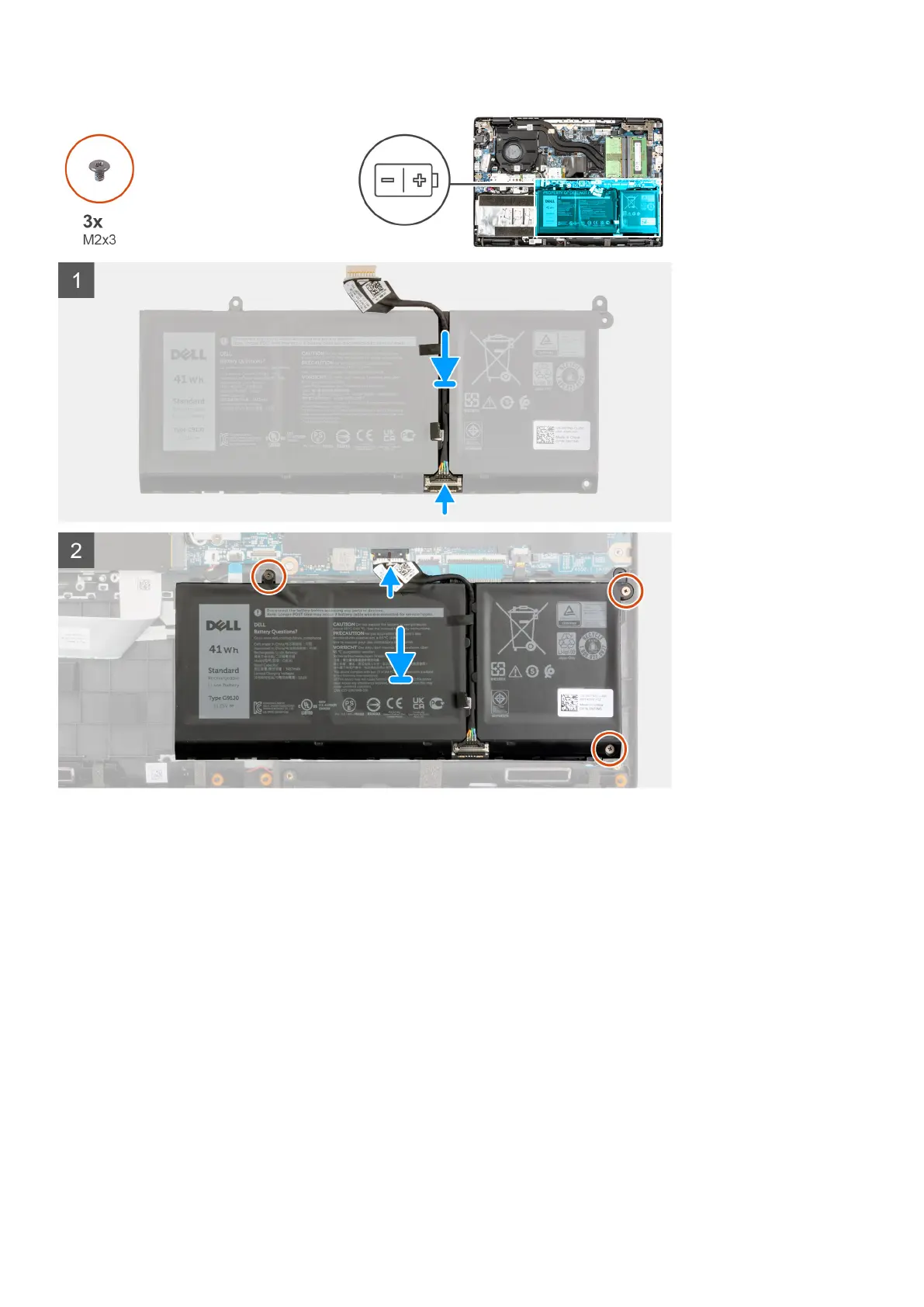 3. Route the battery cable through the routing channel in the battery and adhere the adhesive tapes.