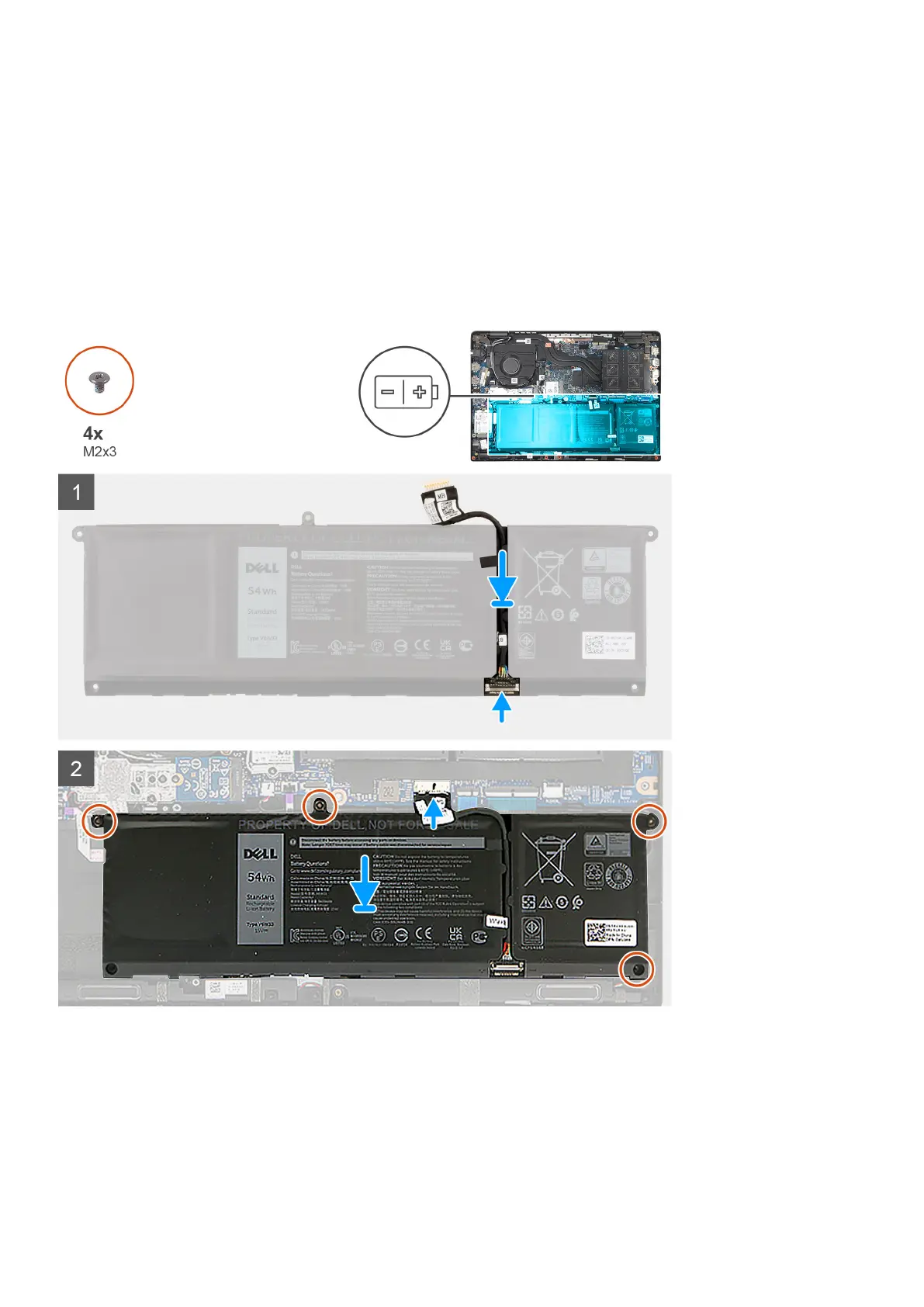 5. Install the four (M2X3) screws to secure the battery in place.