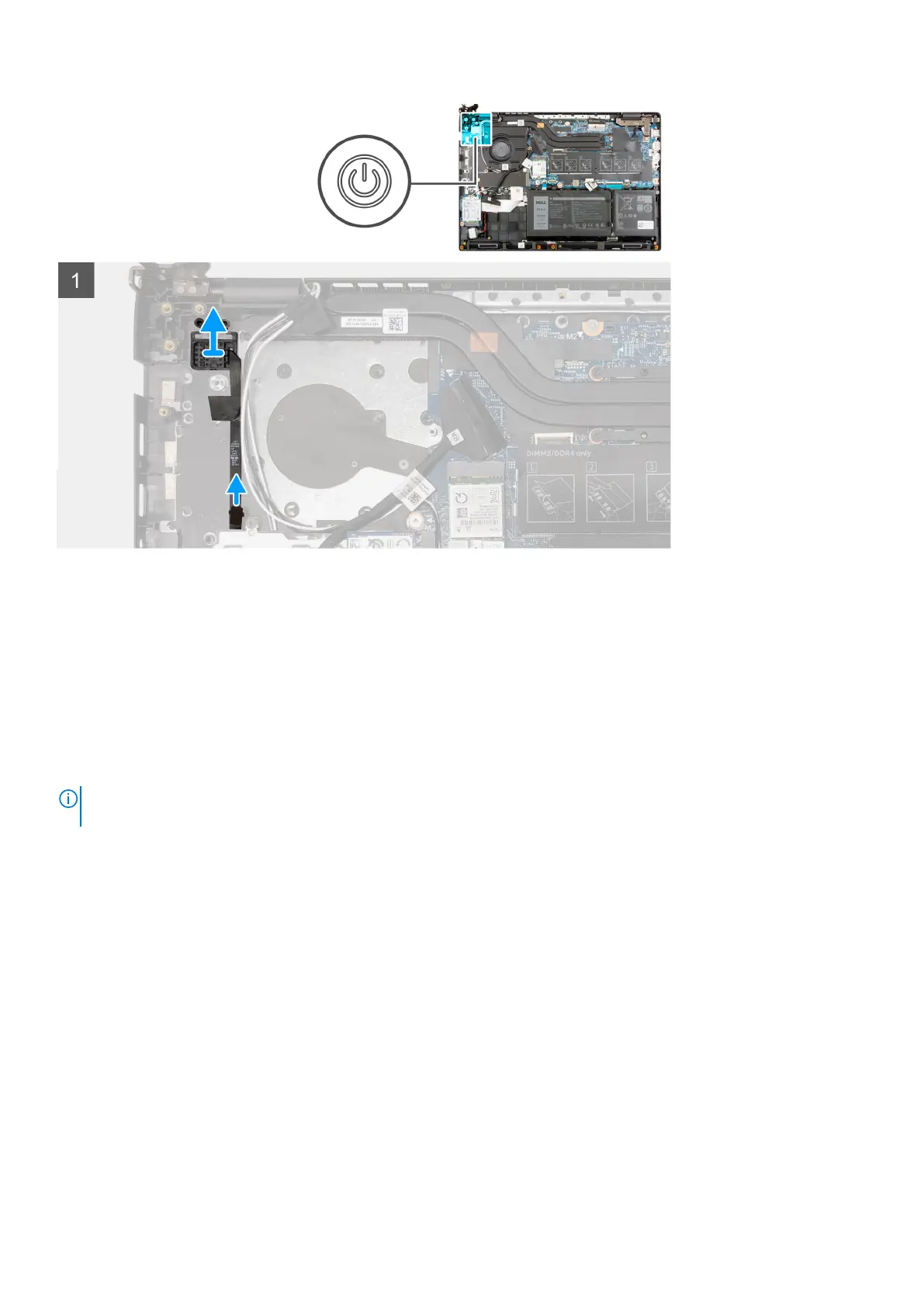 2. Lift the power button with fingerprint reader off the palmrest assembly.