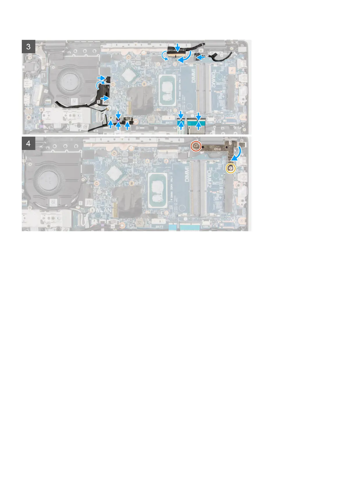8. For 4G LTE enabled systems, affix the WWAN I/O board cable on the palmrest assembly.