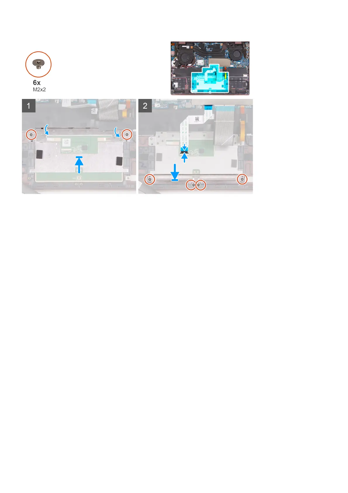4. Replace the two screws (M2x2) that secure the touchpad to the palm-rest and keyboard assembly.