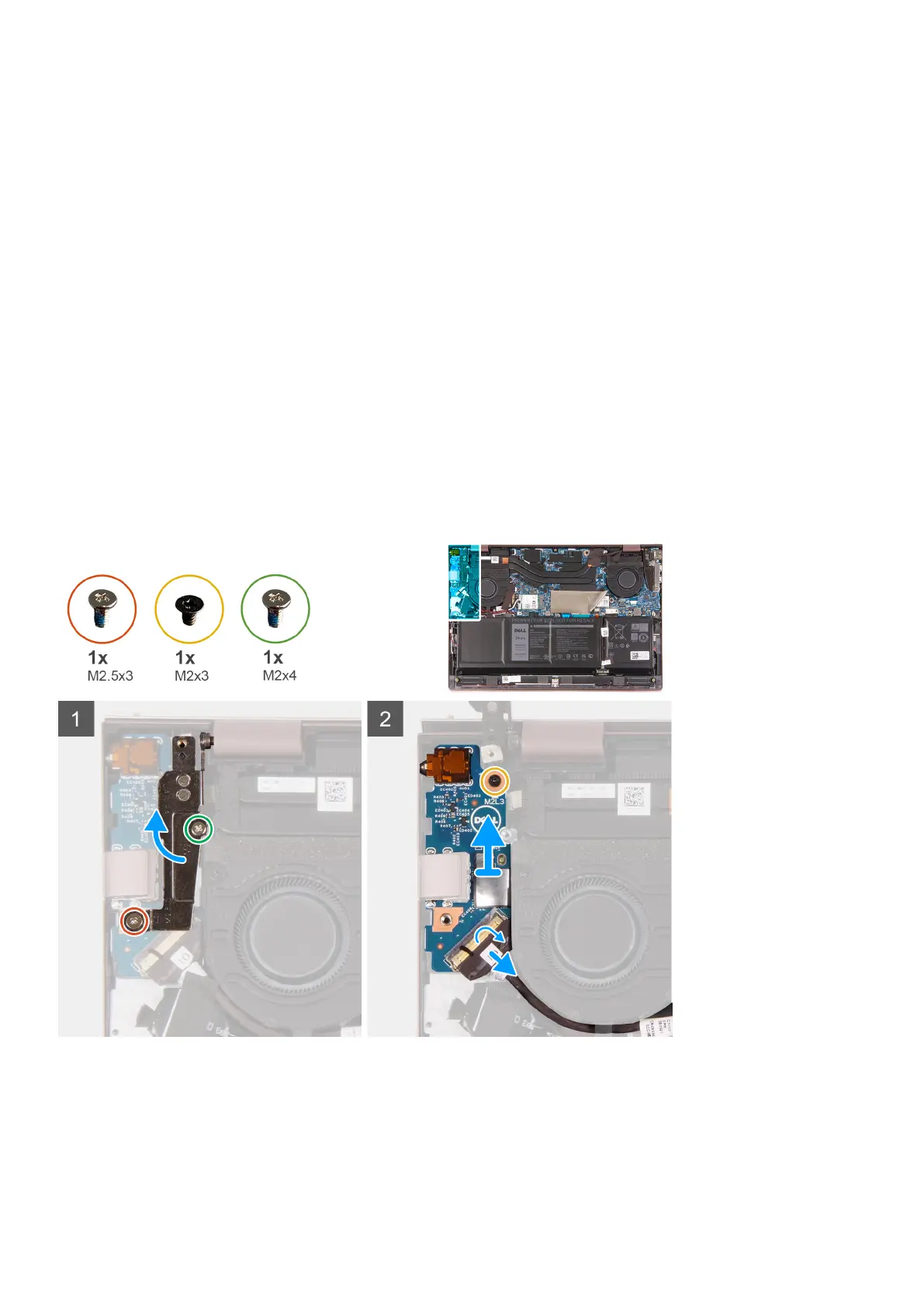 14. Replace the screw (M2x3) that secures the display-cable bracket to the system board.