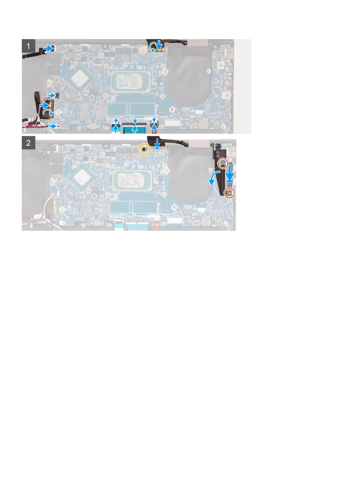 11. Replace the screw (M2x3) that secures the display-cable bracket to the system board.