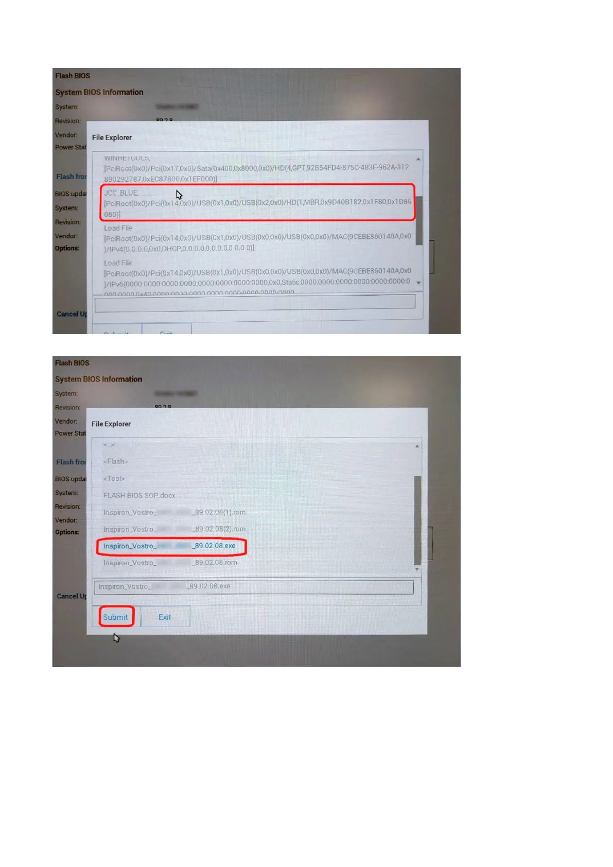 5. Once the file is selected, Double click the flash target file, then press submit.