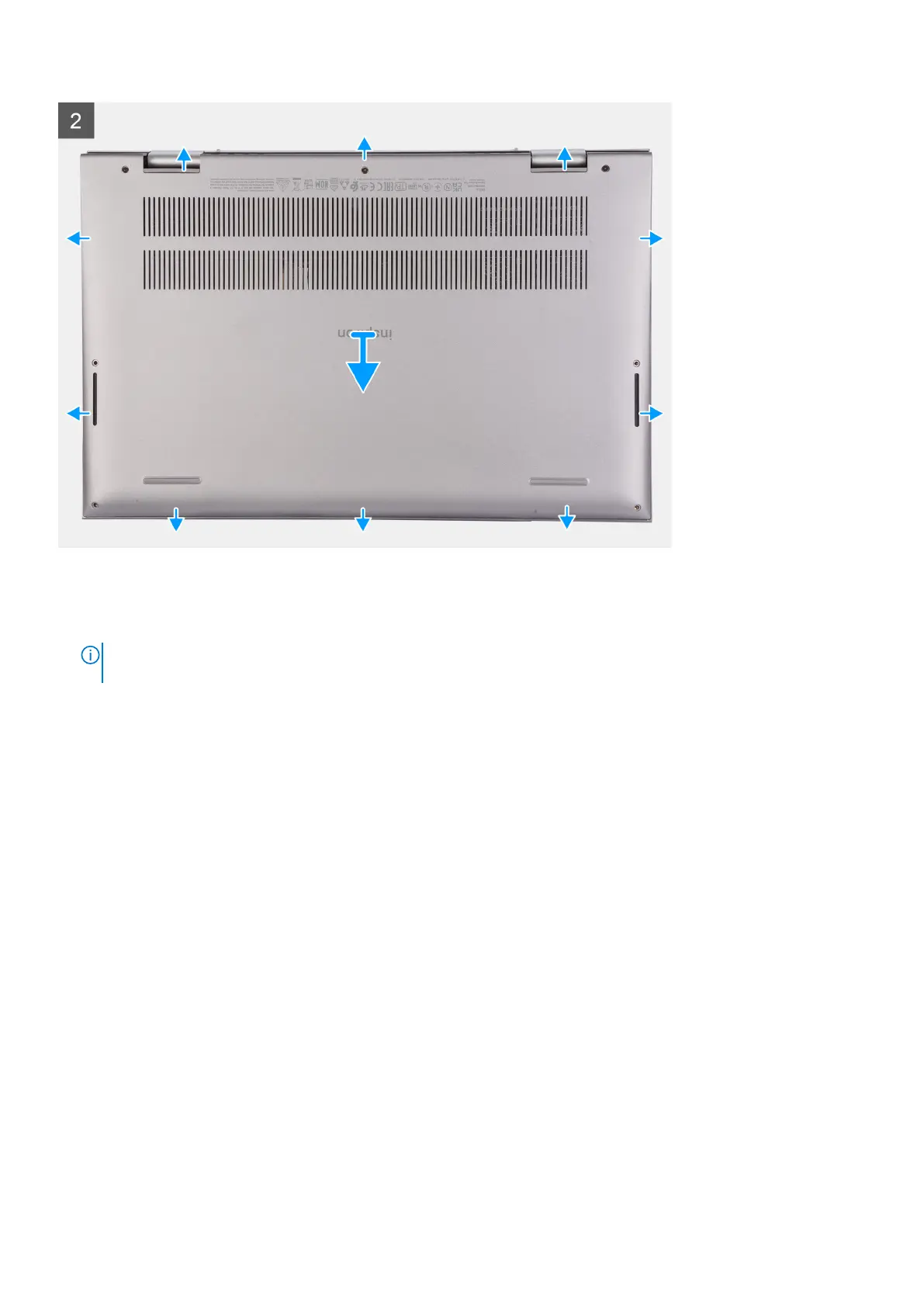 3. Starting from the top-left corner, pry the base cover to release the base cover from the palm-rest and keyboard assembly.