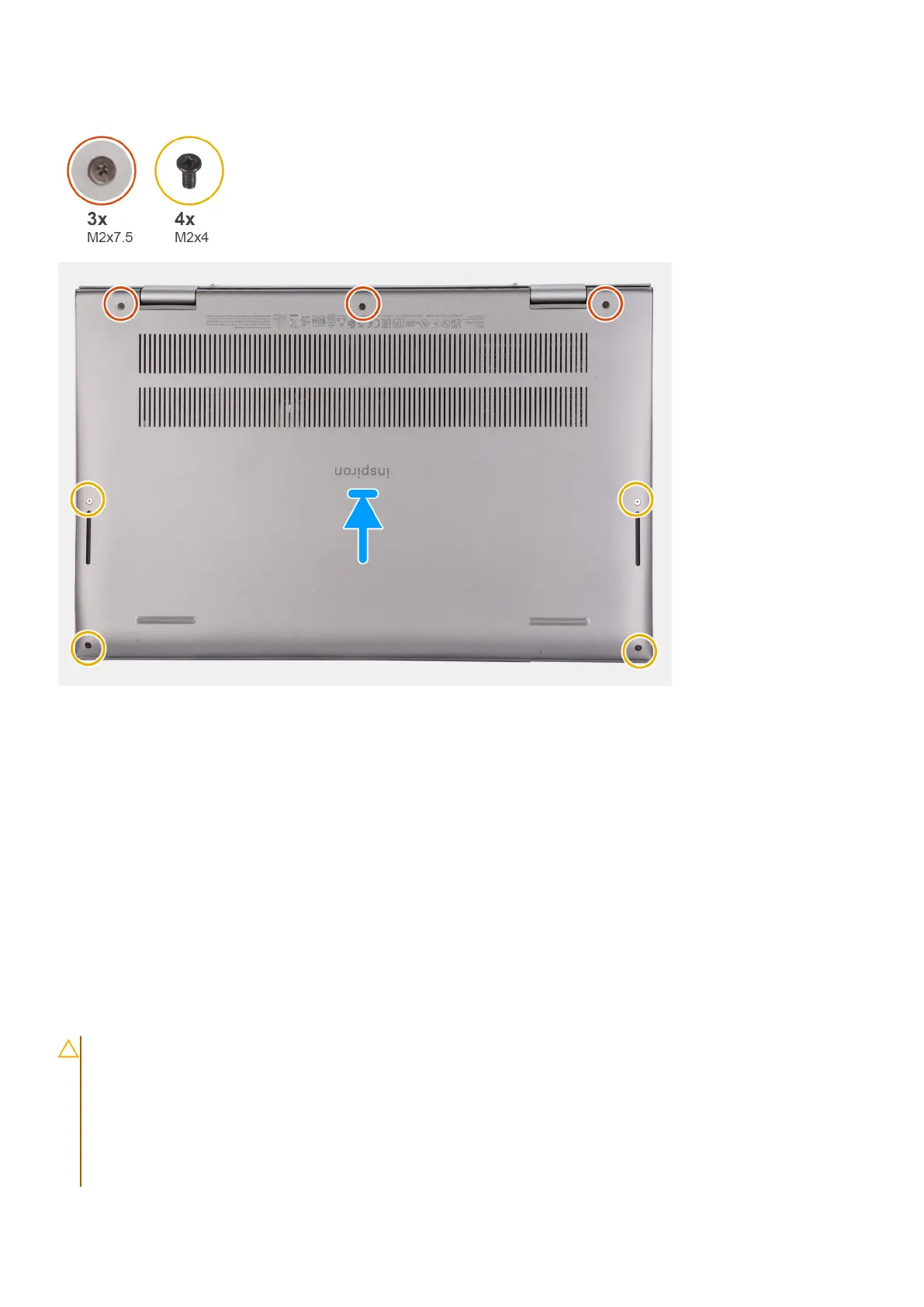 2. Replace the four screws (M2x4) that secure the base cover to the palm-rest and keyboard assembly.