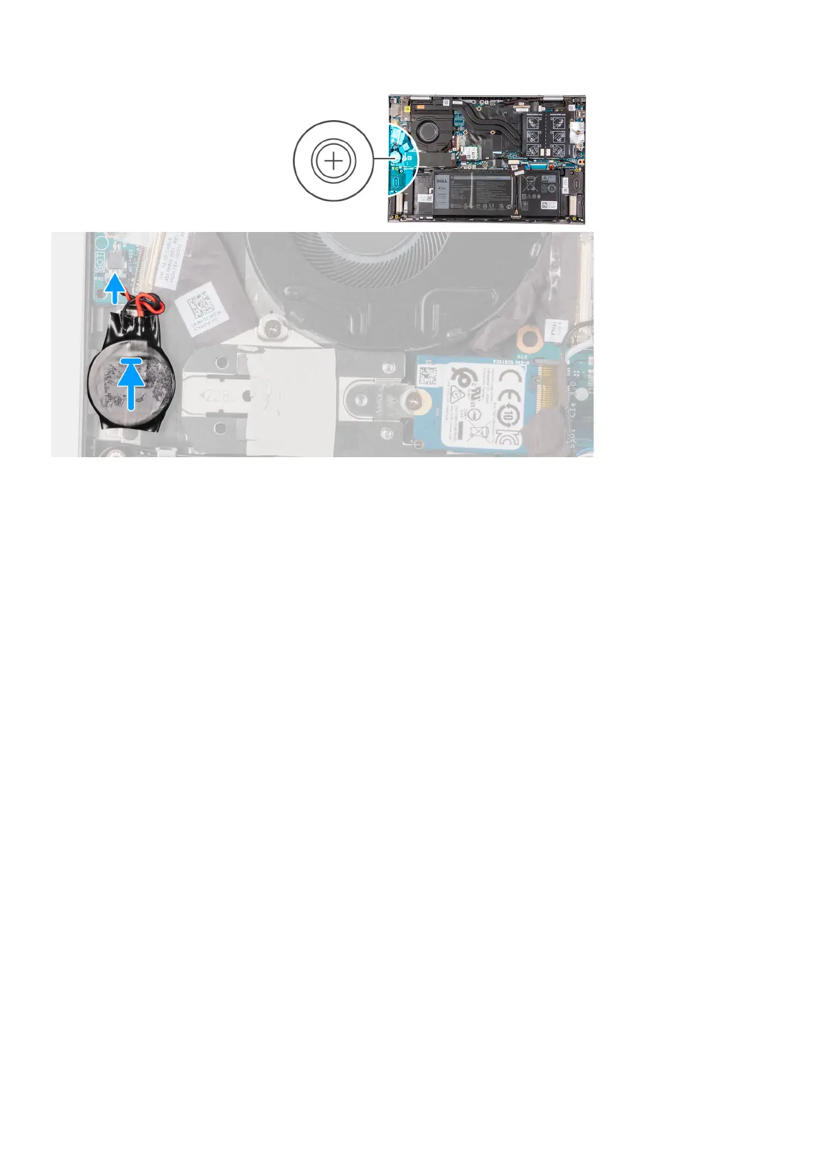 1. Adhere the coin-cell battery to the slot on the palm-rest and keyboard assembly.