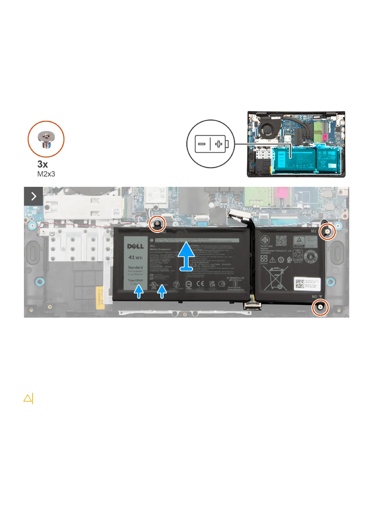 The following image indicates the location of the 3-cell battery and provides a visual representation of the removal procedure.