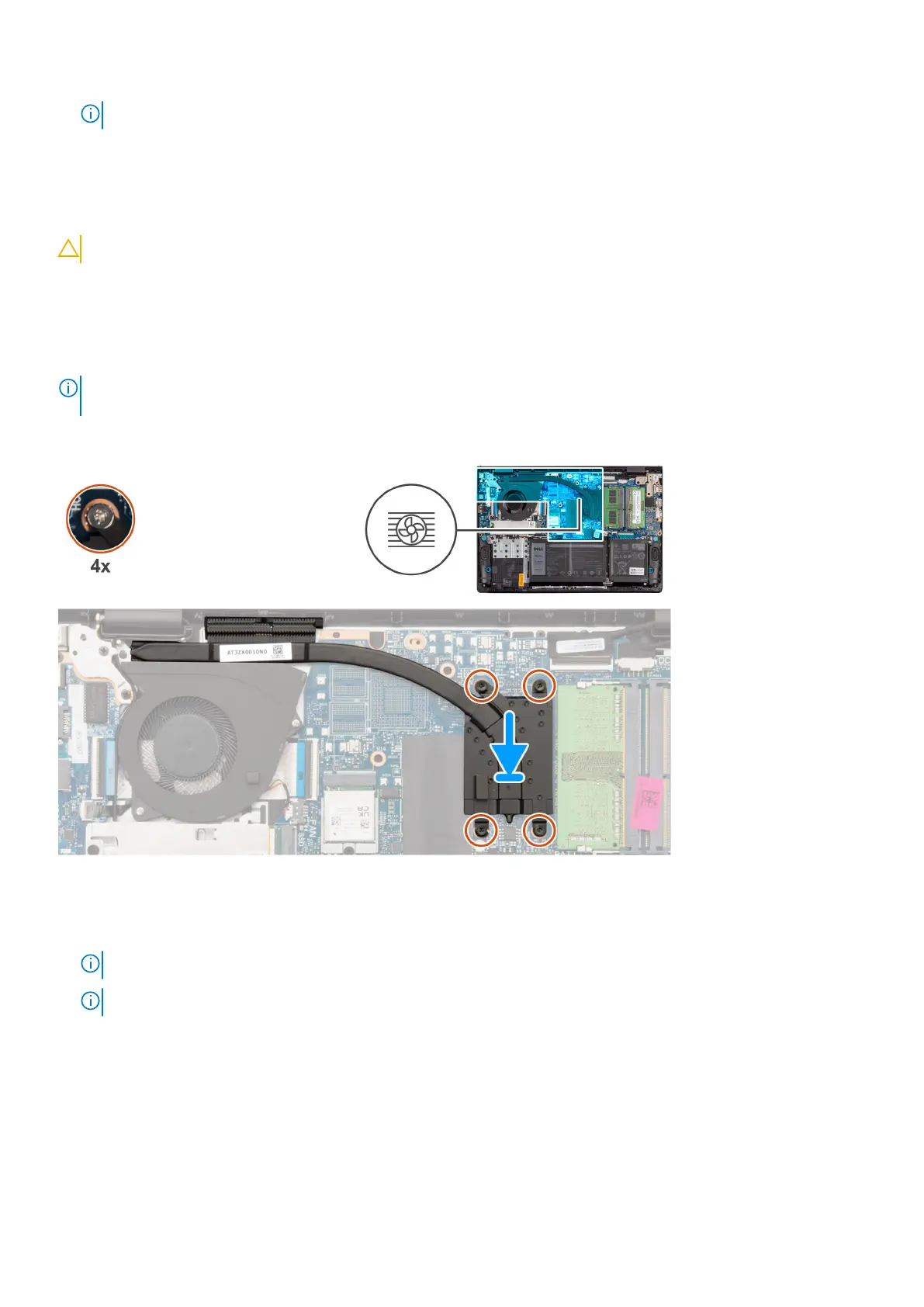 2. Tighten the four (M2x2) captive screws that secure the heat sink to the system board.