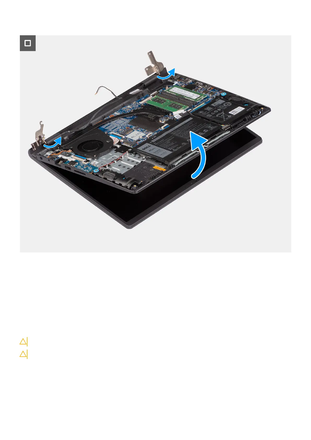 6. Remove the display assembly from the palm-rest and keyboard assembly.