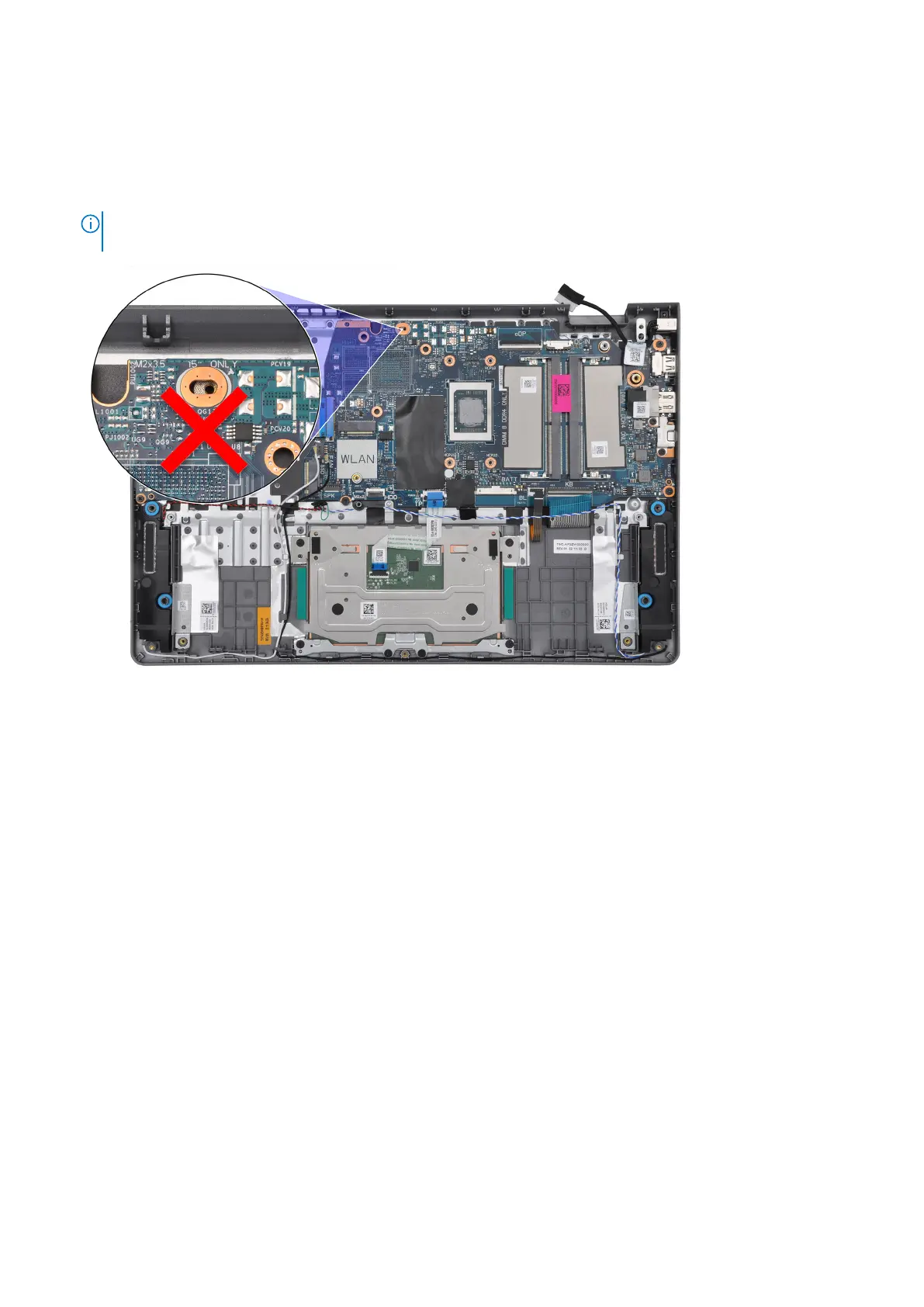 NOTE: When re-placing/reinstalling the system board, DO NOT install a screw to the screw hole at the top side the