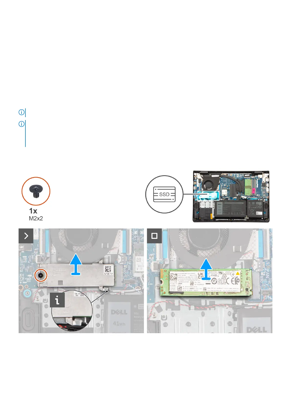 The following images indicate the location of the M.2 2280 solid state drive and provide a visual representation of the removal