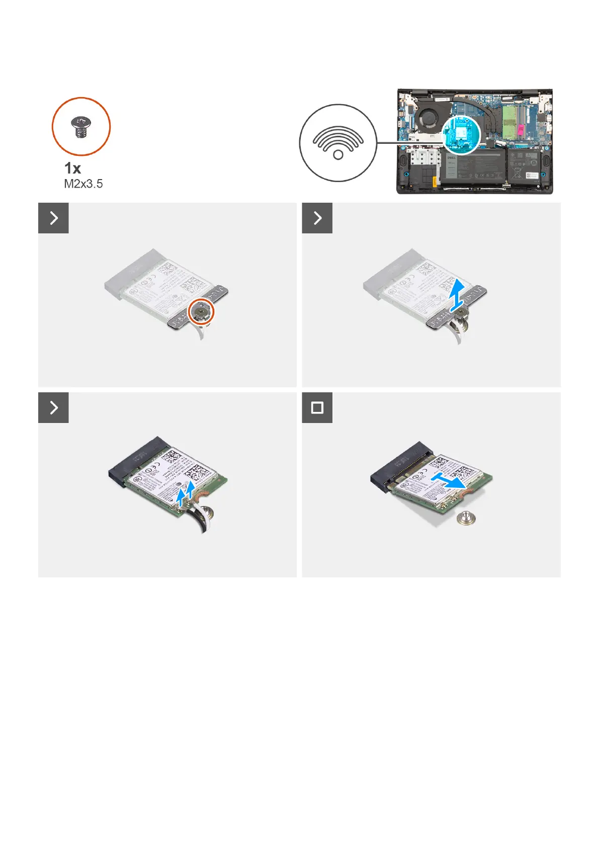 1. Remove the screw (M2x3.5) that secures the wireless-card bracket to the system board.