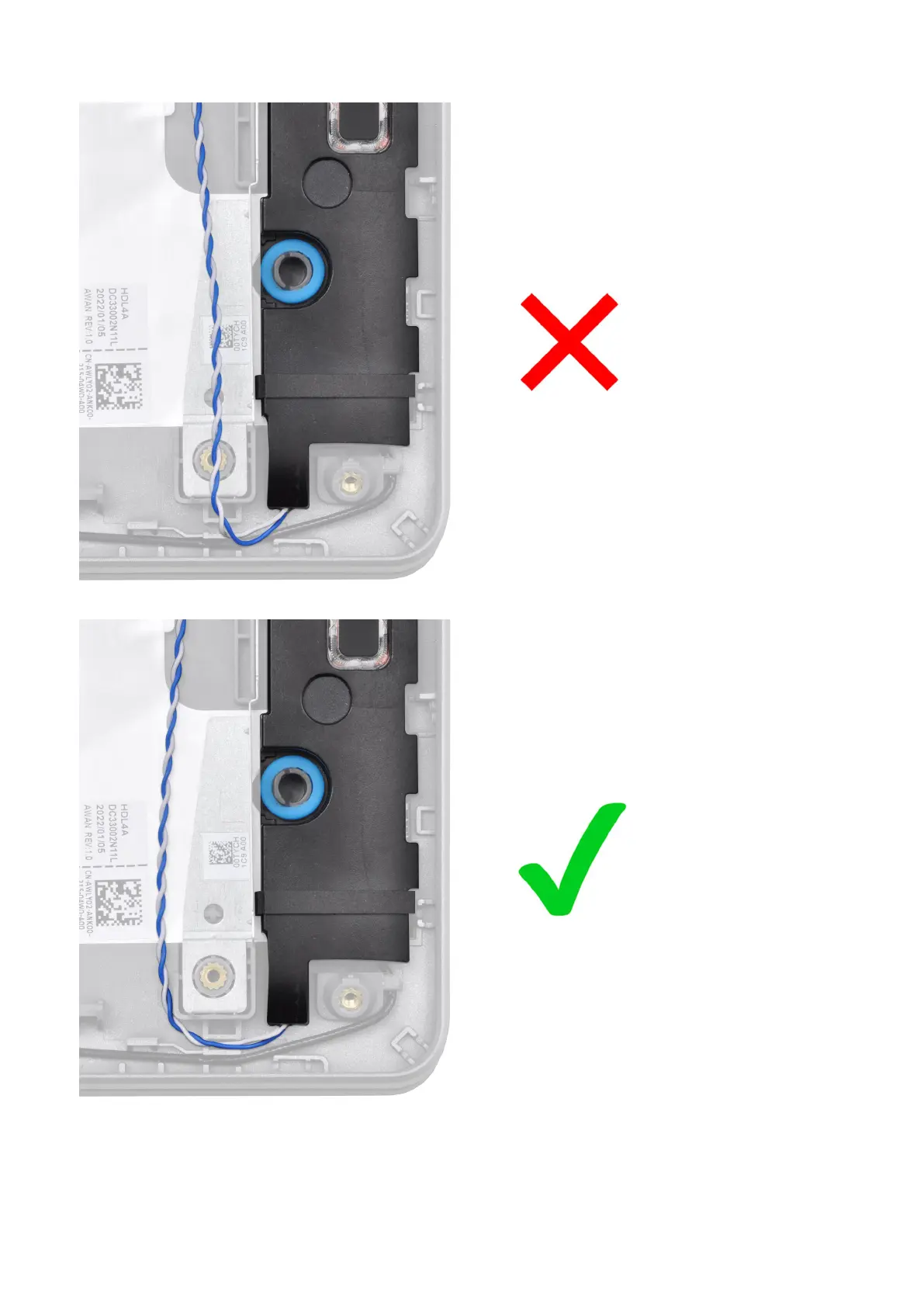 6. Adhere the adhesive tape to secure the speaker cable.