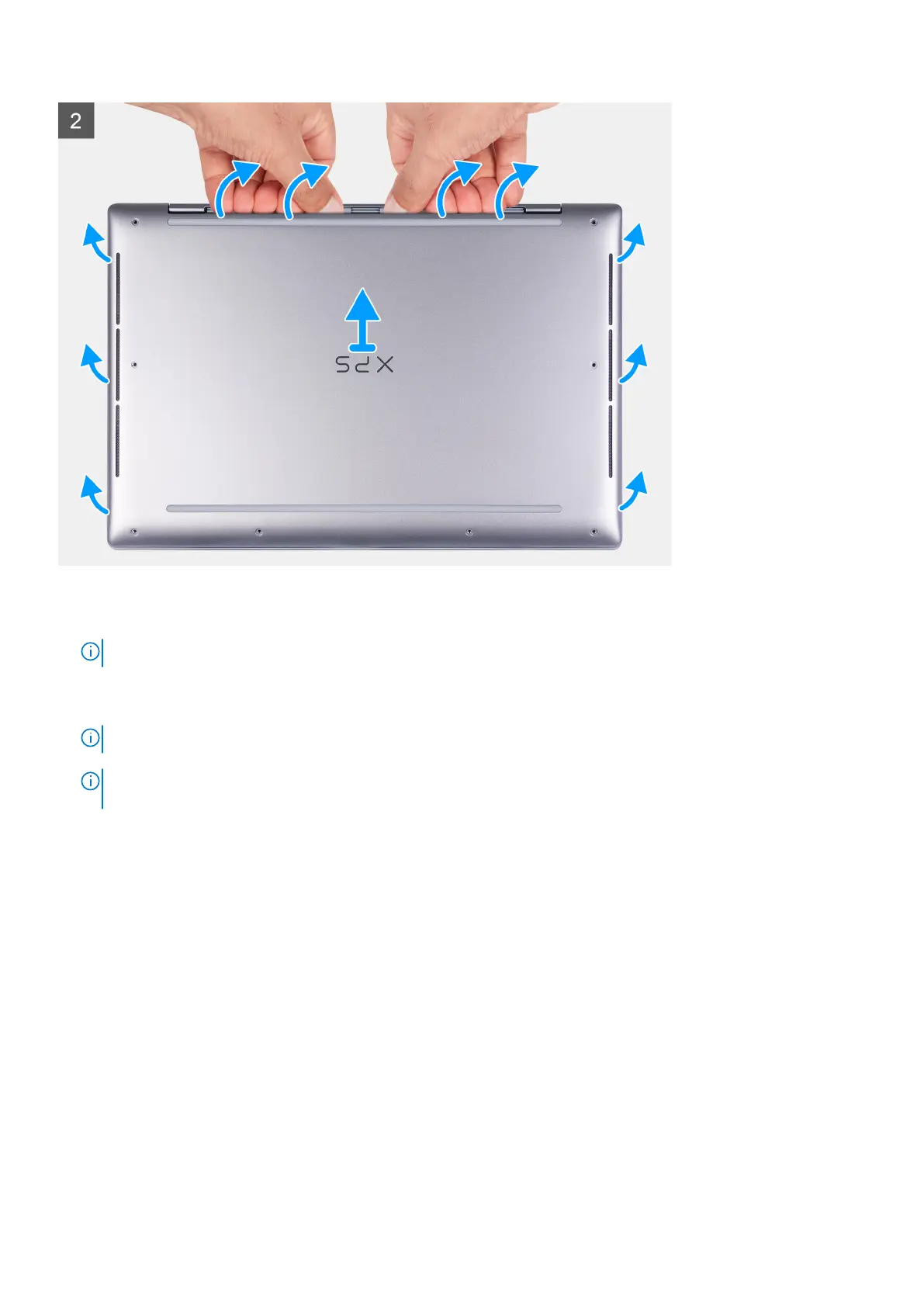 NOTE: Do not pull on or pry the base cover from where the display assembly hinges are, doing so may damage the base
