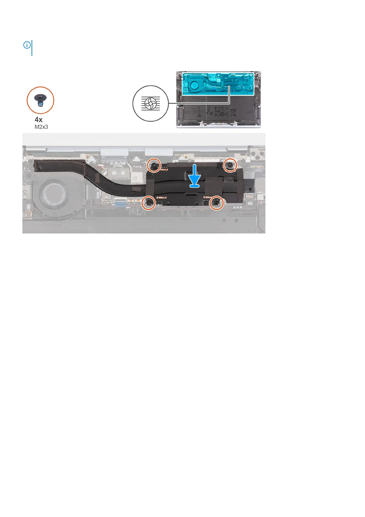 2. In sequential order (1>2>3>4), tighten the four screws (M2x3) that secure the heat sink to the system board.