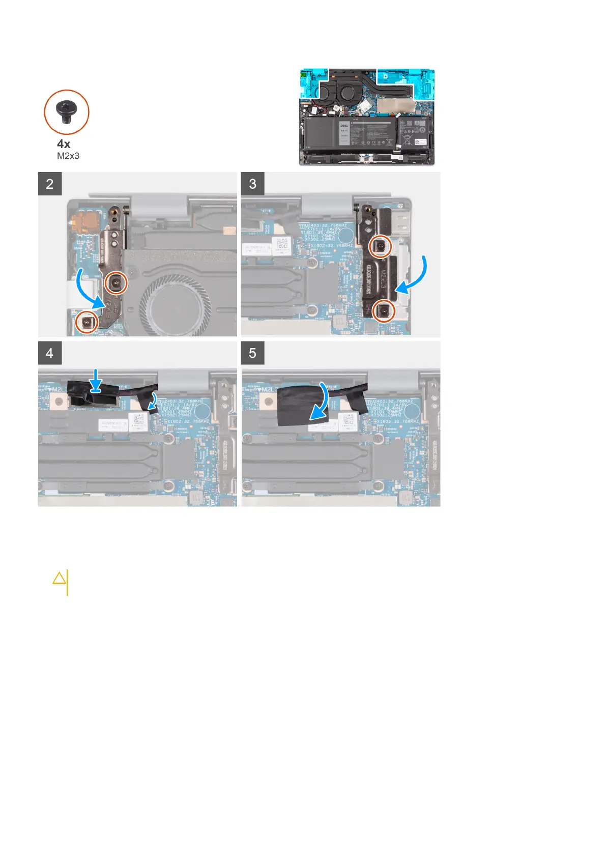 6. Replace the two screws (M2x3) that secure the right-display hinge to the palm-rest and keyboard assembly.