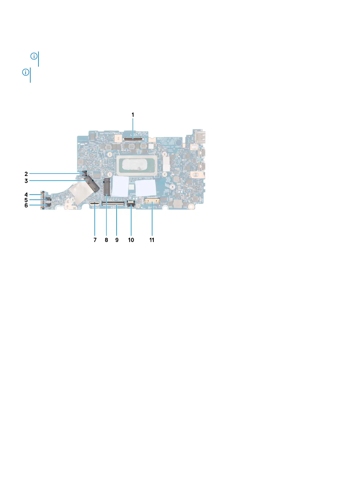 The following image indicates the connectors on your system board.