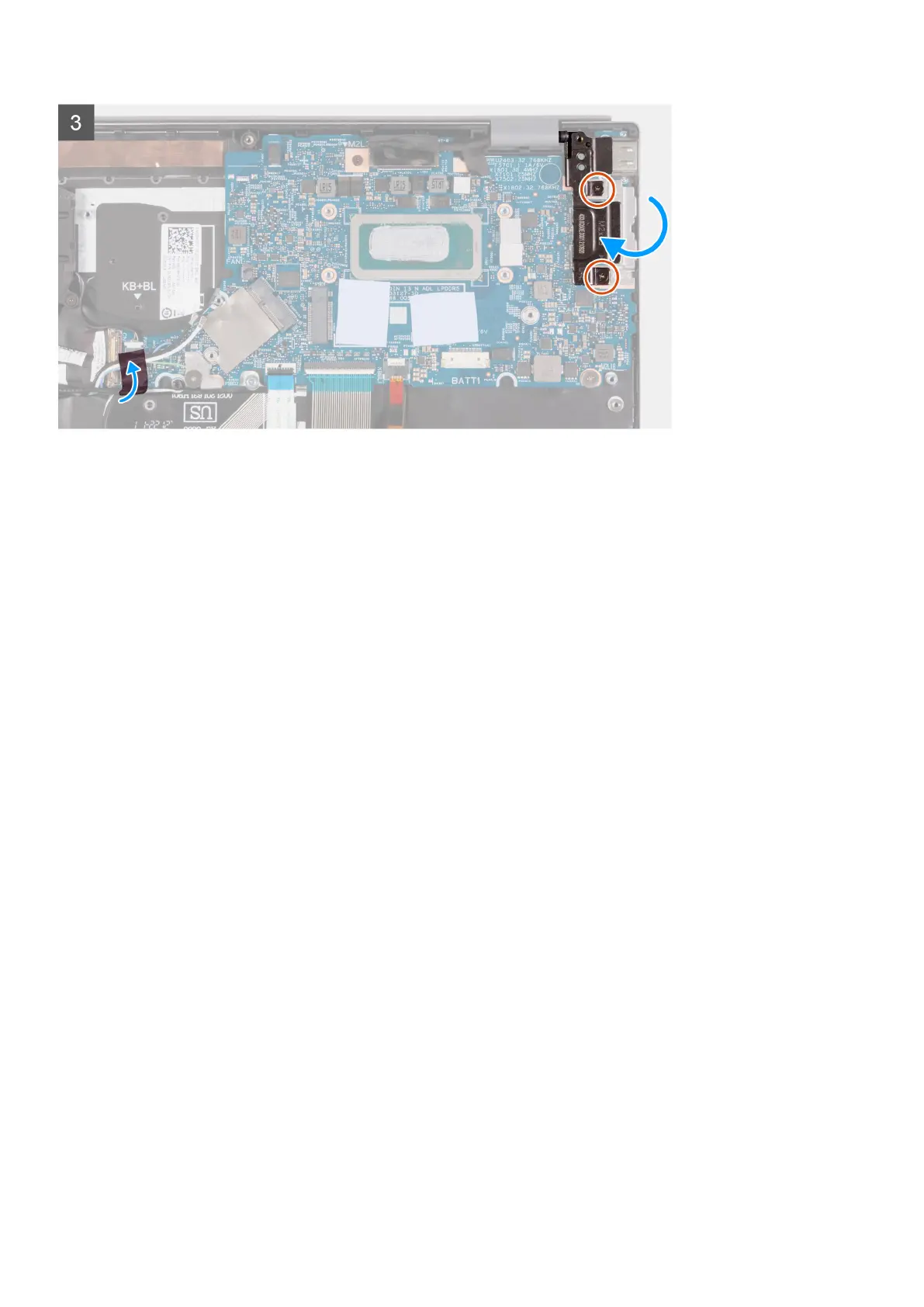 3. Replace the screw (M2x3) that secures the system board to the palm-rest and keyboard assembly.