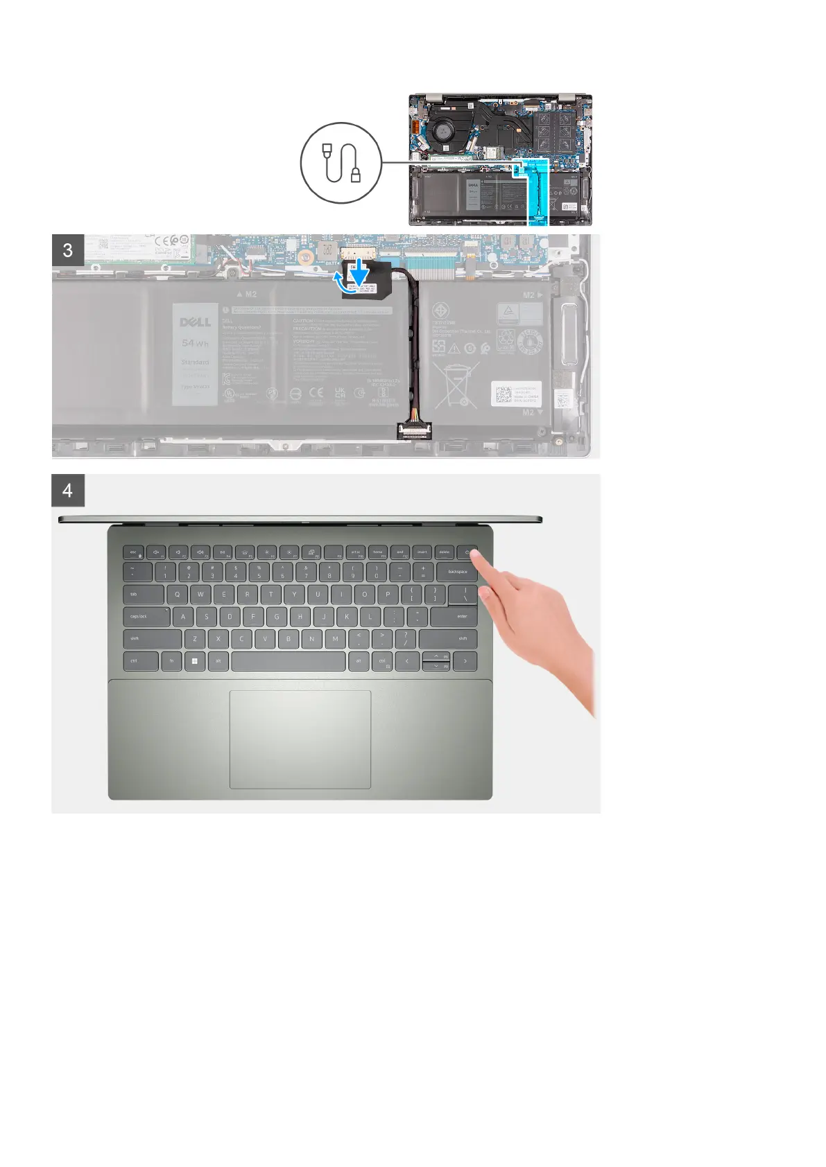 6. Press and hold the power button for five seconds to ground the computer and drain the flea power.
