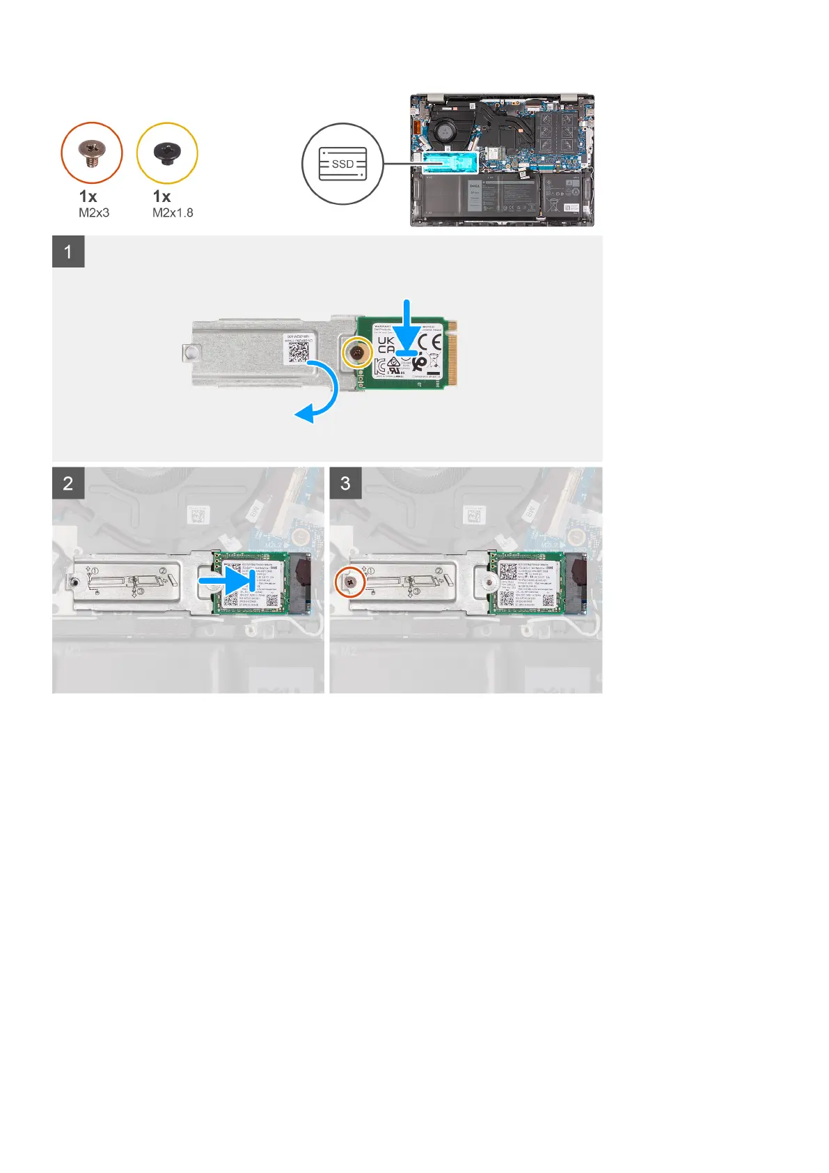 2. Tighten the screw (M2x1.8) that secures the M.2 2230 solid-state drive to the M.2 2230 solid-state drive bracket.