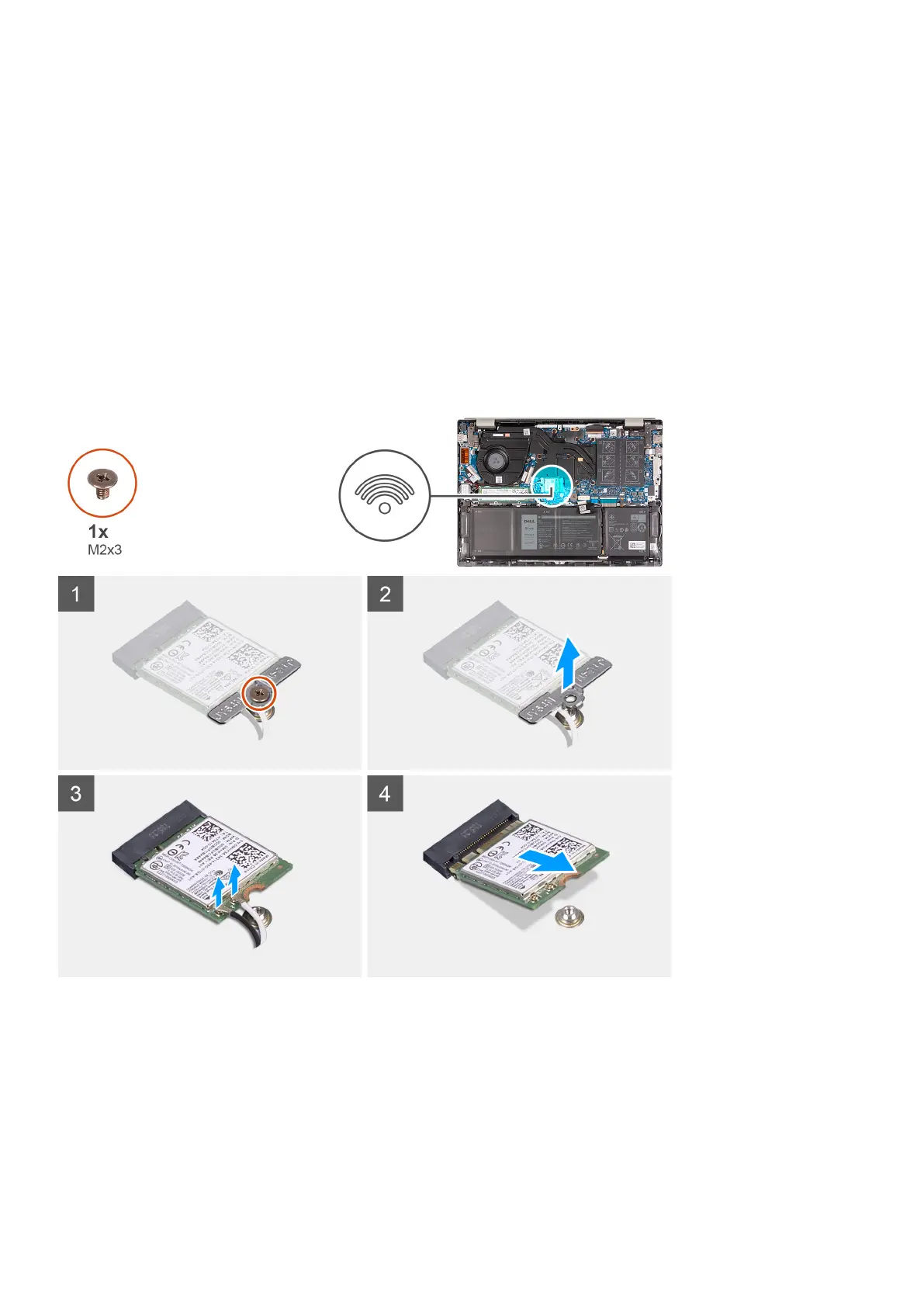 1. Remove the screw (M2x3) that secures the wireless-card bracket to the wireless card and system board.