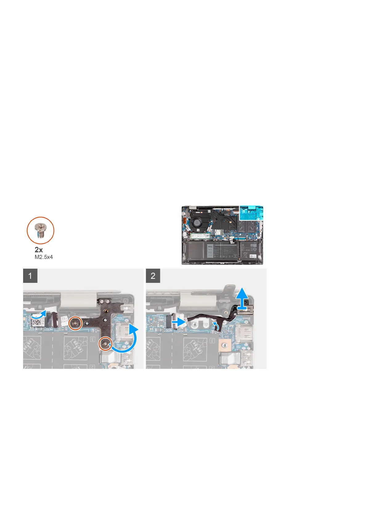 1. Remove the two screws (M2.5x4) that secure the right display hinge to the system board.
